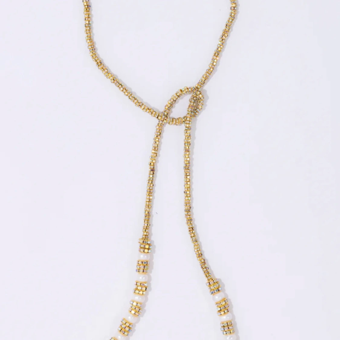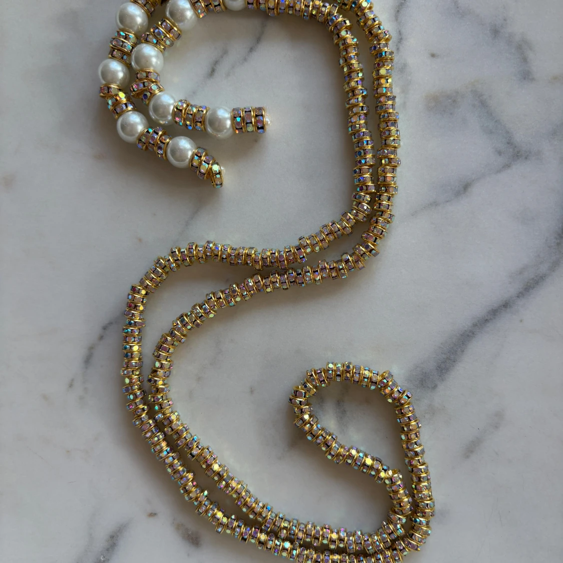 Fint halsband från coola norska märket Pearl Octopuss.y. Guldstrass med pärlor. Dyrt i inköp, finns på deras hemsida nu.