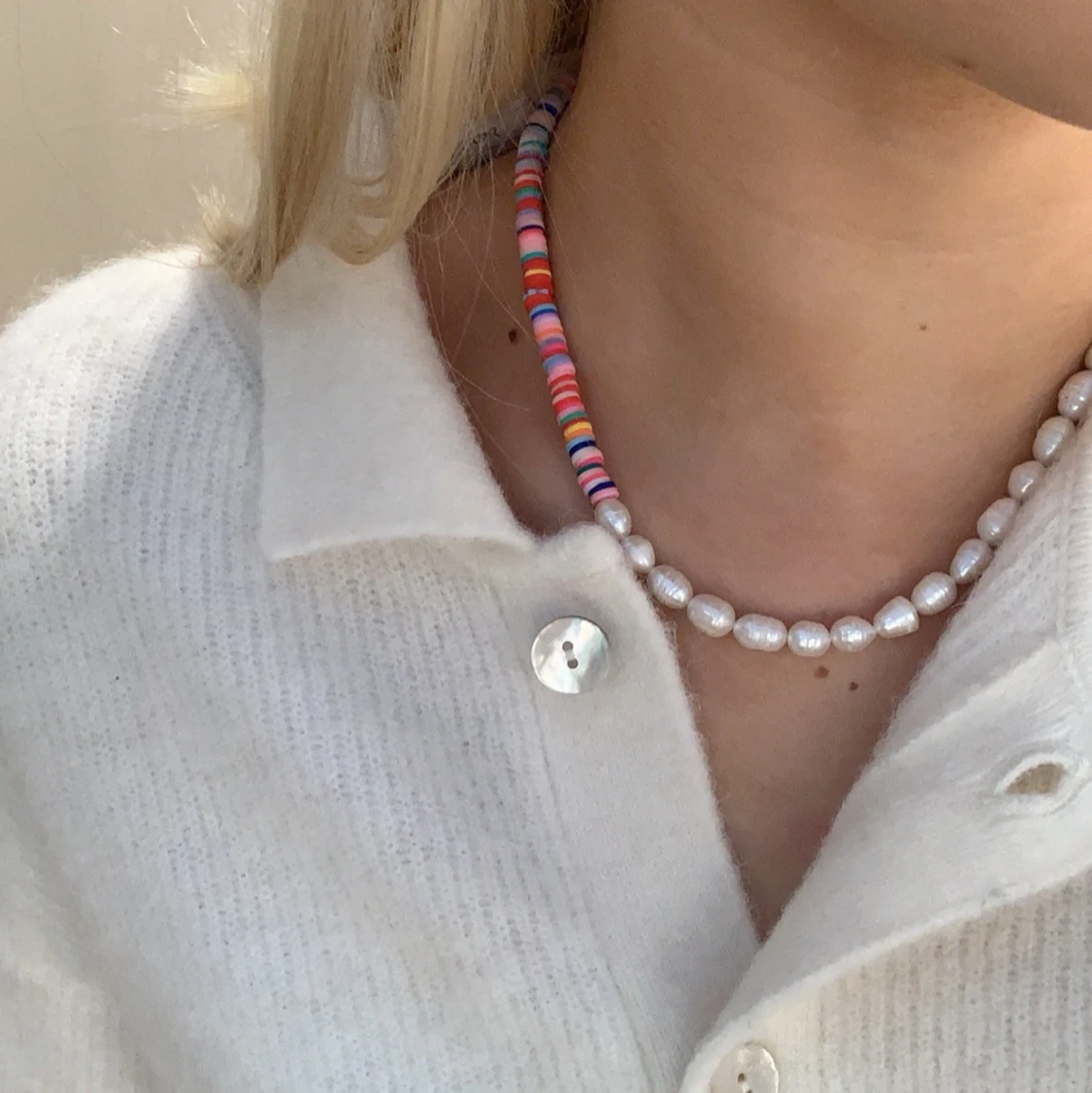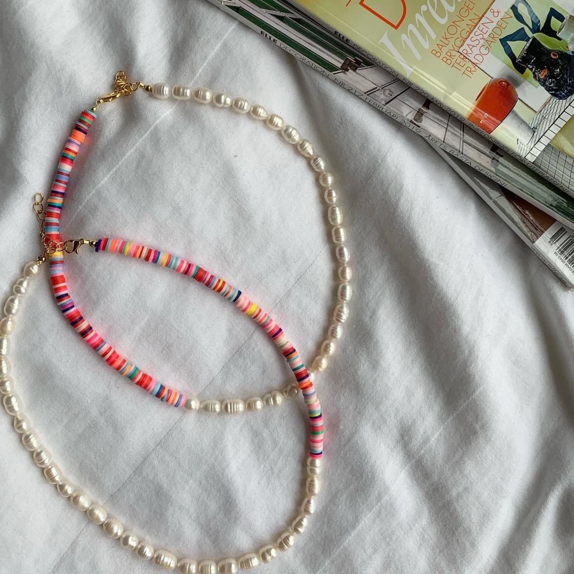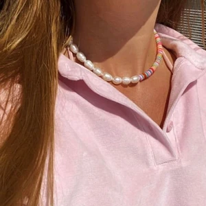 Halsband av sötvattenspärlor och färgglada polymerpärlor!❤️