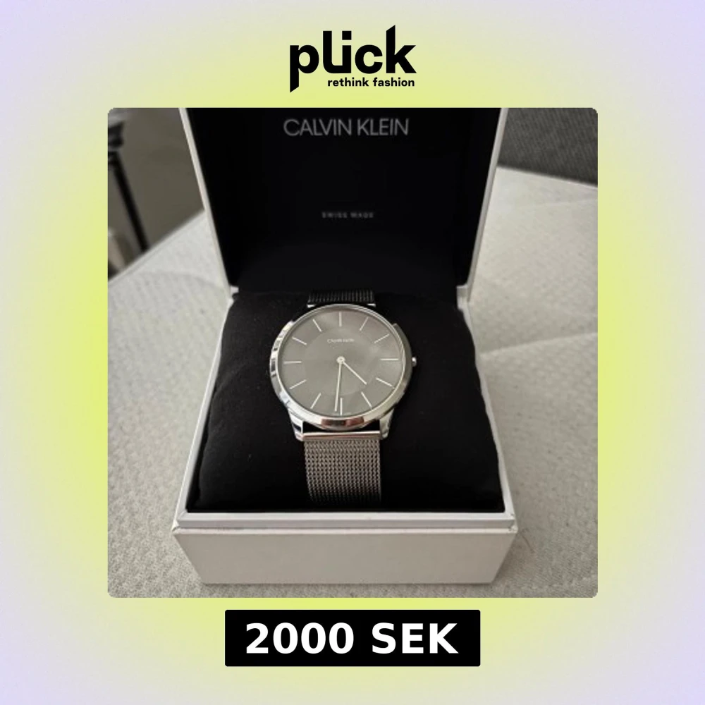 Elegant klocka från Calvin Klein med en stilren silverfärgad urtavla och matchande mesh-armband. Klockan har en minimalistisk design med tunna visare och indexmarkeringar. Perfekt för en tidlös och sofistikerad look. Den är i nyskick garanti medföljer!