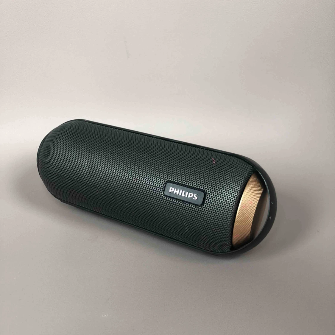 Trådlös bärbar högtalare. Ljud i 360 grader betyder att du får fylligt ljud runt omkring dig i vilket fall som helst. Den är stänksäker, tålig, utrustad med trådlös musikströmmning. Laddas med USB mini sladd. Ny pris: 850 kr