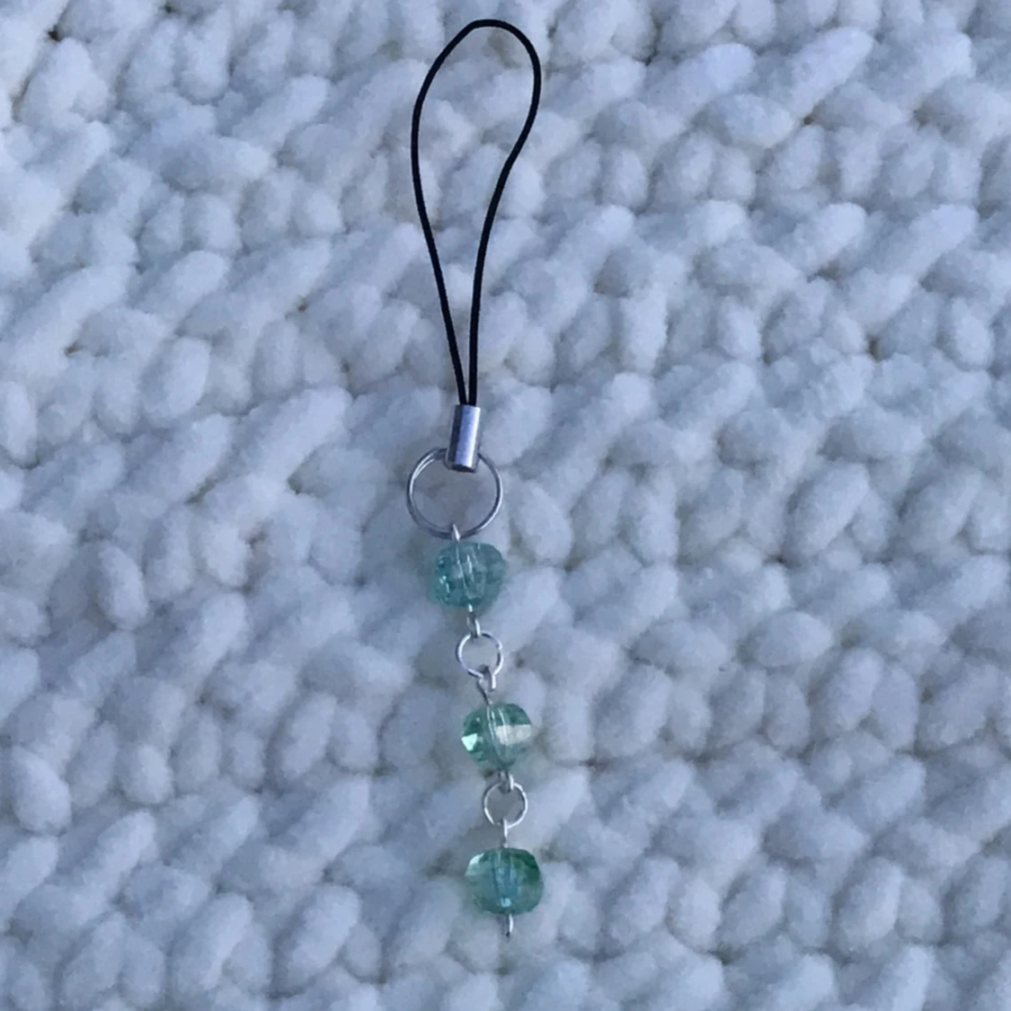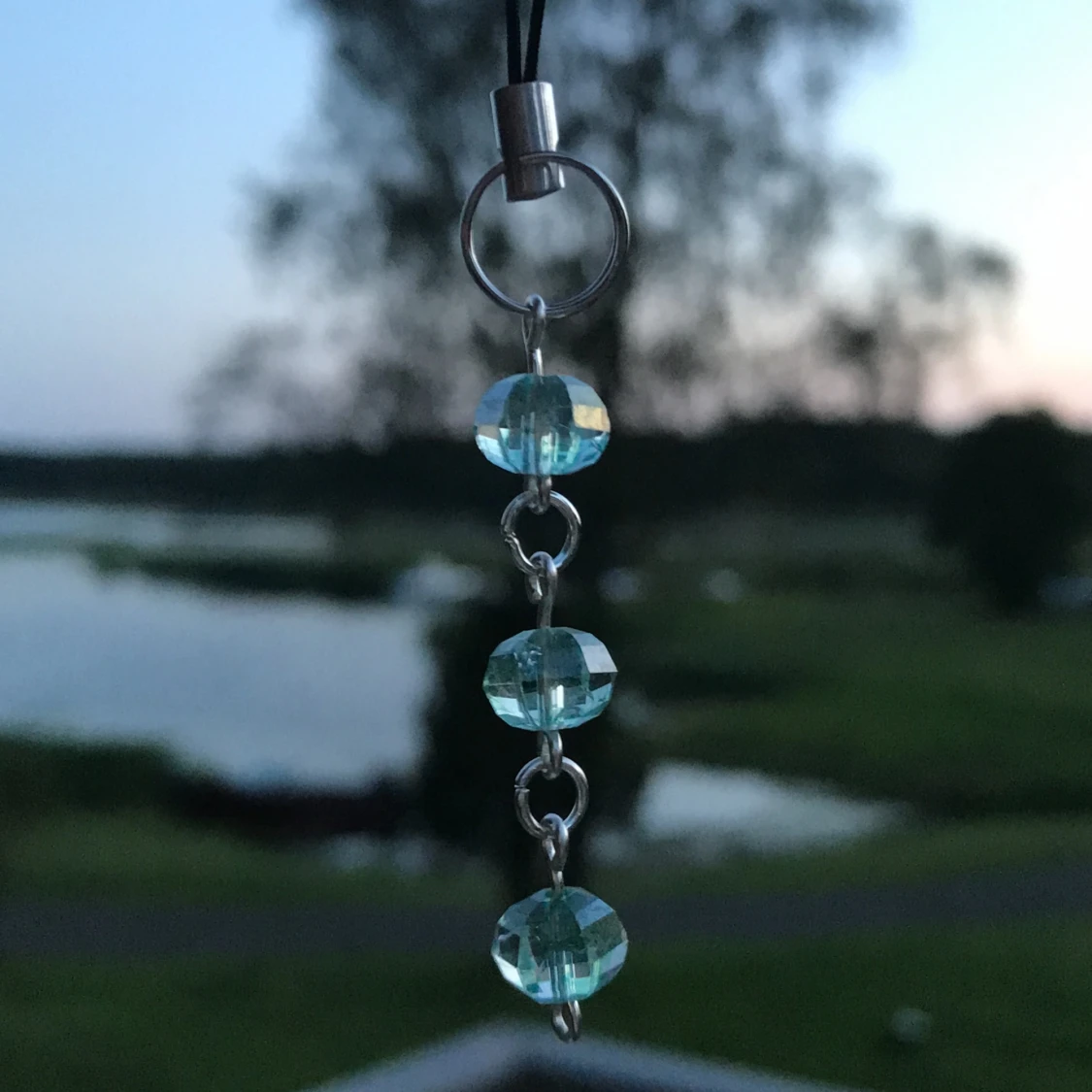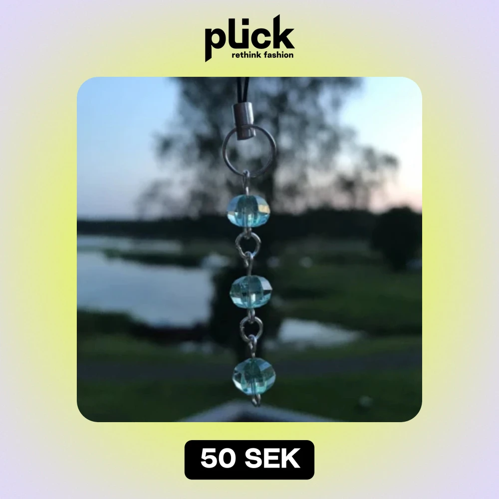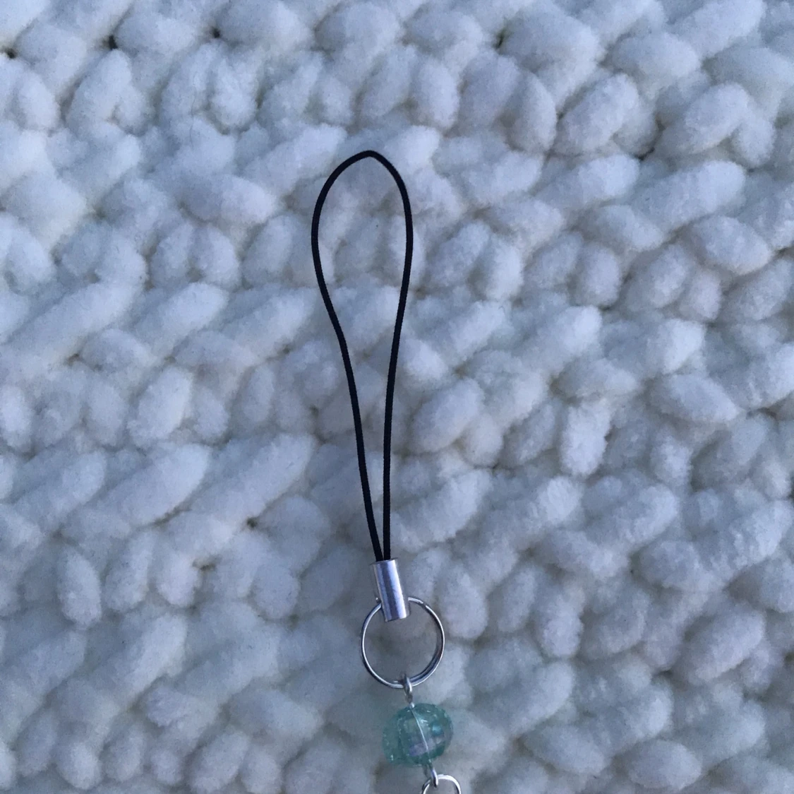 Phonecharm i blå-turkos-gröna färger och silveromfattning , finns fler designer på min profil