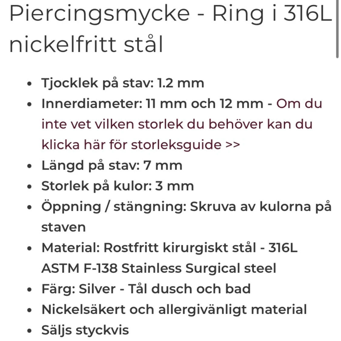 Superfint nytt/oanvänt piercingsmycke till conch eller vad som. Perfekt för dig som vill/behöver ha en rak stav men gillar looken av en ring! Kirurgiskt stål 316L, innerdiameter 12mm. Se övrig info på andra bilden! Kan skickas med frimärke 22 kr