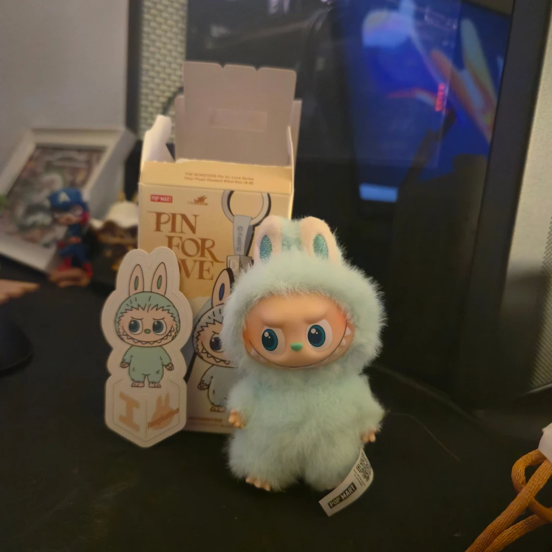 Öppnade labubu pin for love "I"