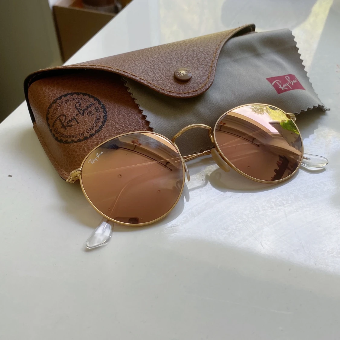 Solglasögon från RayBan i modellen ”round flash lenses pink”. Originalpris: 1900kr, säljer för 750kr. Några små märken på glaset, därav priset. Fodral och putsduk medföljer. Skriv gärna för fler bilder eller frågor! 💗