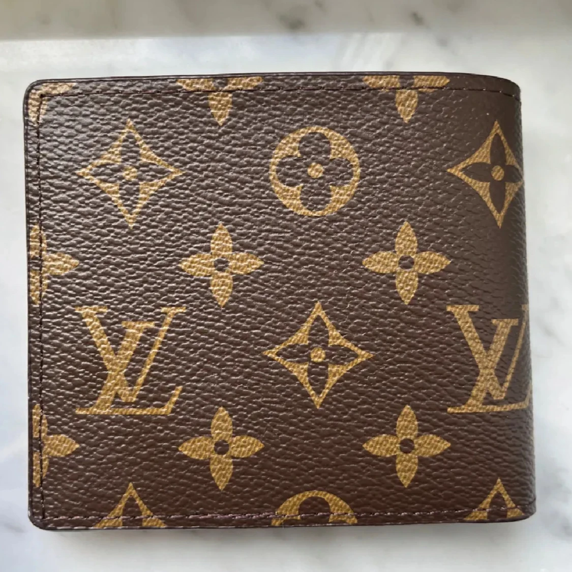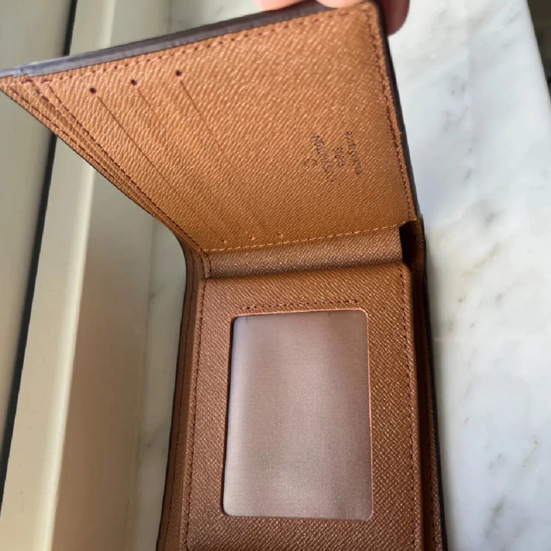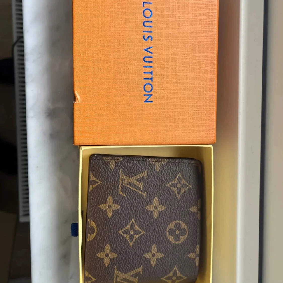 Snygg plånbok från Luviton i klassiskt monogrammönster. Brun med ljusare luviton och blommor, tillverkad i skinn. Flera kortfack och fönster för ID. Kommer med originalask och certifikat.