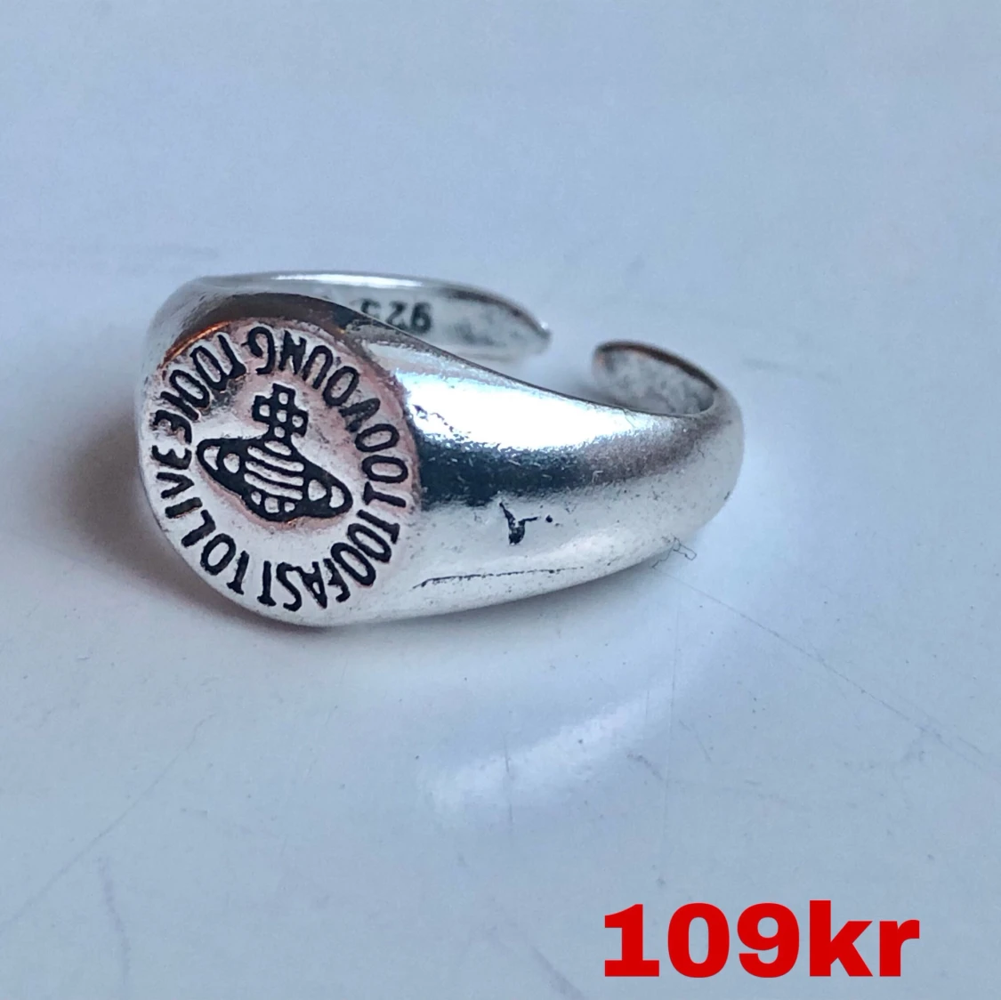 Säljer dessa supersnygga ringar som liknar vivienne westwood (EJ ÄKTA) Har tre exemplar varav dom två andra ringarna har fabriksfel därav sänkt pris, pris för ringarna står på respektive bild <3 Kan mötas upp i Stockholmsområdet annars tillkommer frakten 🖤 Storleken kan justeras.