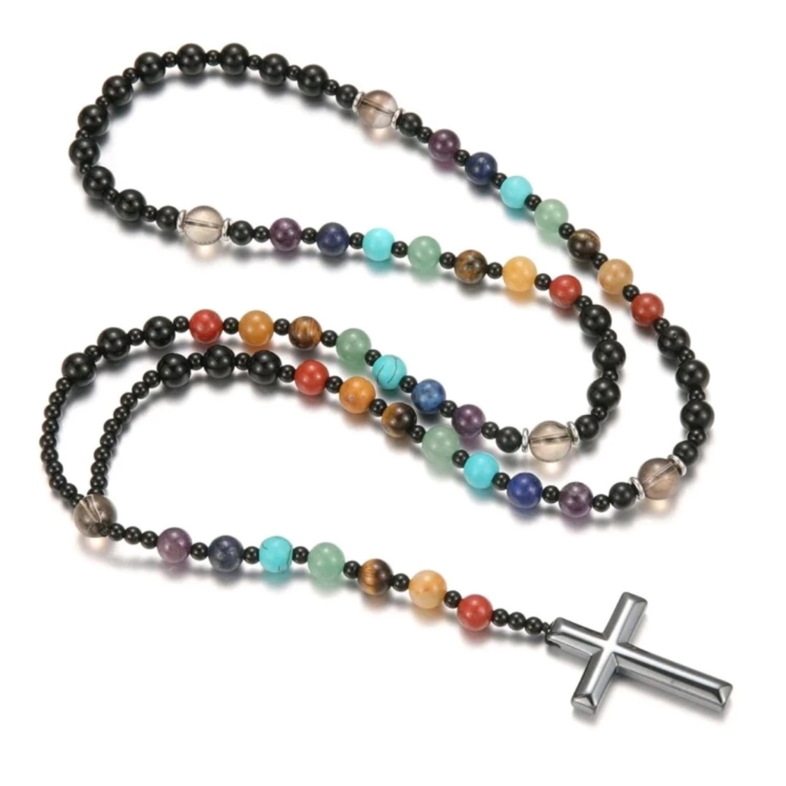 Färgglatt halsband med kors