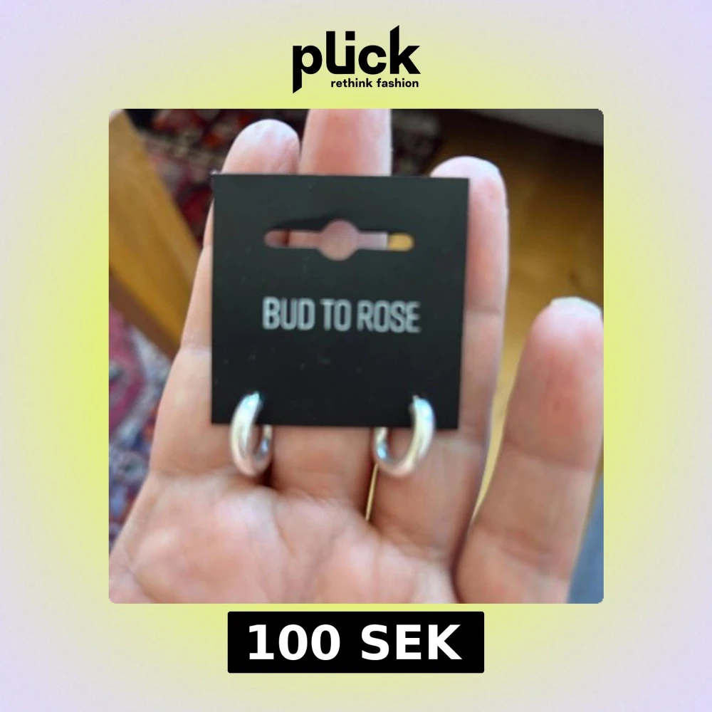 Säljer ett par stilrena silverfärgade hoop-örhängen från Bud to Rose. Perfekta för dig som gillar minimalistiska smycken med en modern touch. Passar till många olika stilar och tillfällen.