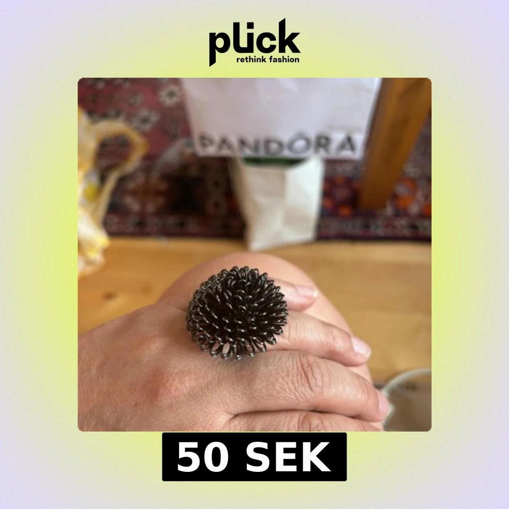 Unik och iögonfallande ring mörksilverfärg. Ringen har en stor, rund och tredimensionell design som påminner om en blomma eller boll av små öglor. Perfekt för dig som vill sticka ut med ditt smycke. Hämta i Majorna