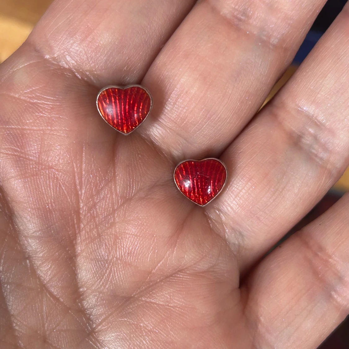 Säljer ett par söta örhängen i form av röda hjärtan. Perfekta för att ge en färgklick till din outfit! Små och diskreta men ändå iögonfallande med sin glansiga yta. Material är silver , hämta i Majorna, följ mig 🙏
