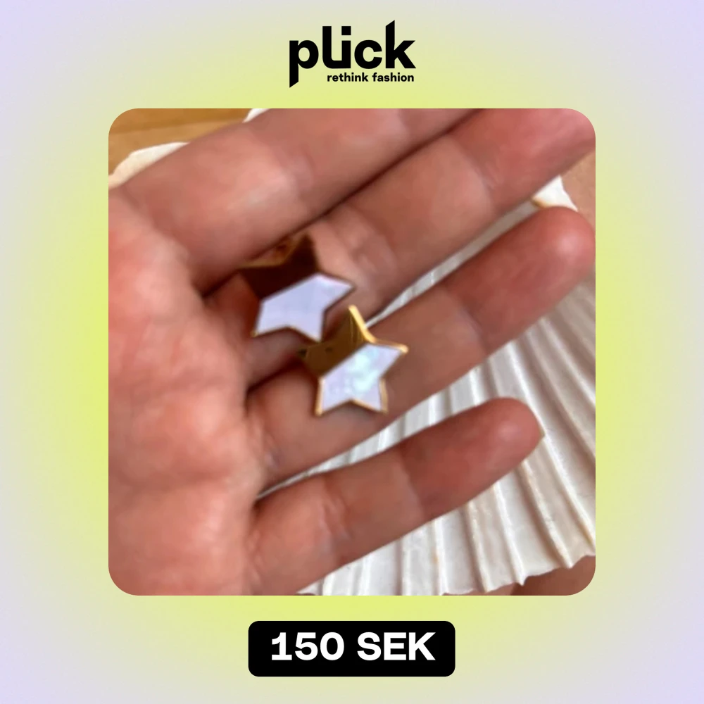 Säljer ett par superfina örhängen i form av stjärnor. De är i guld med en glansig yta som verkligen fångar ljuset. Perfekta för att lägga till lite stjärnglans till vilken outfit som helst! ✨
