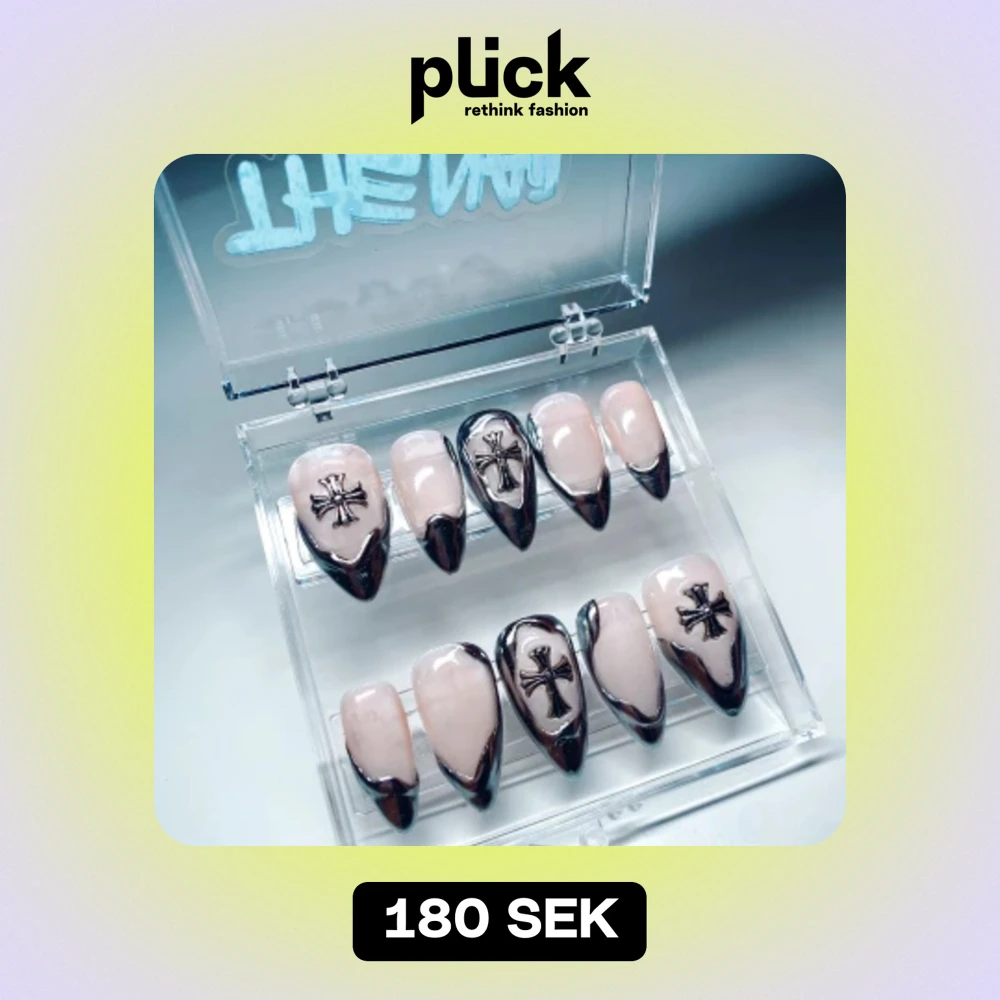 Press On Nails - Standard Sizing WHAT COMES WITH THE NAIL SET: • ONE NAIL FILE • ONE NAIL BUFFER • ONE CUTICLE STICK • 2 ALCOHOL WIPES • ONE NAIL GLUE If you are interested in customised press on nails you can DM me on IG: the.nailz.junkie