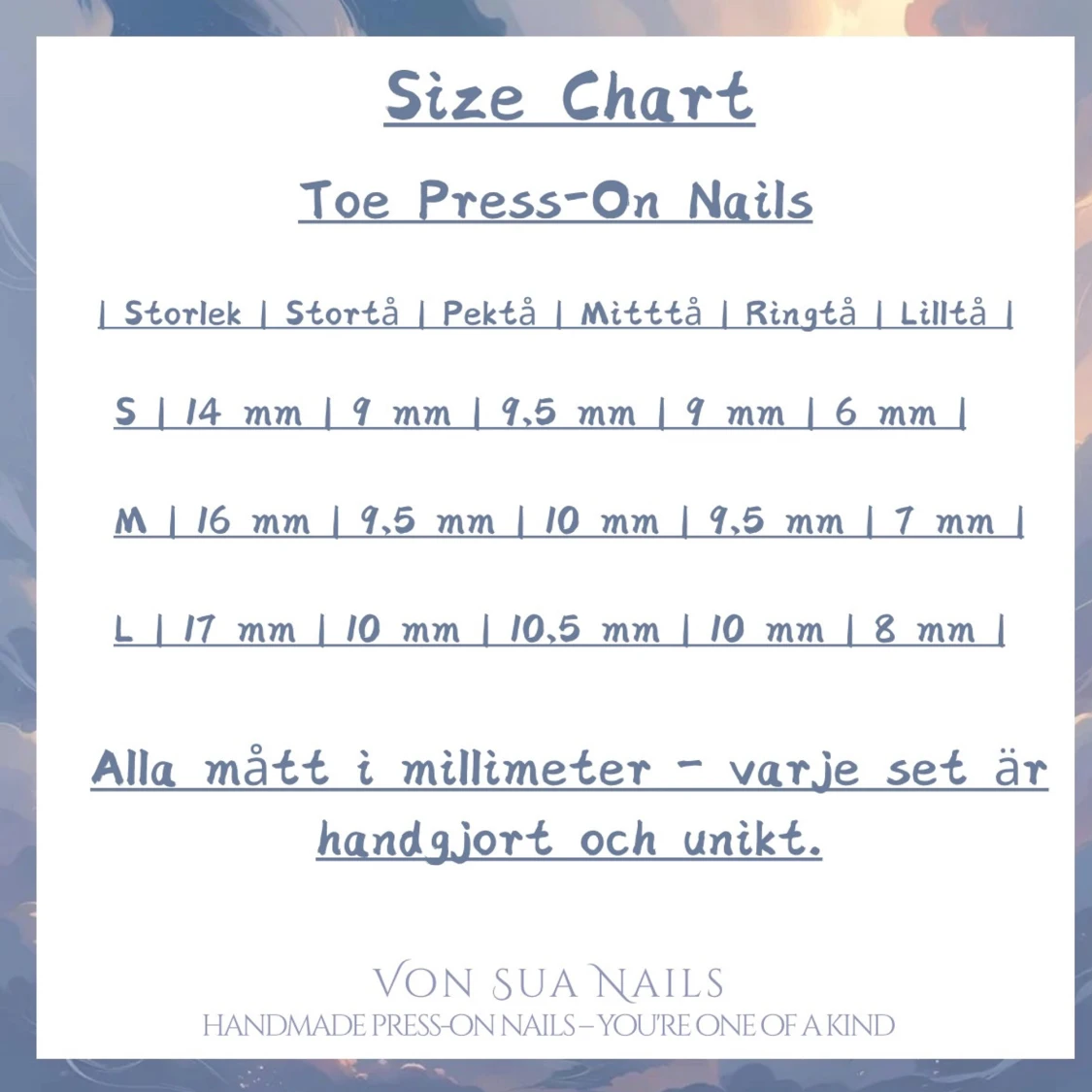 Info; Toe Press-on Nails Info