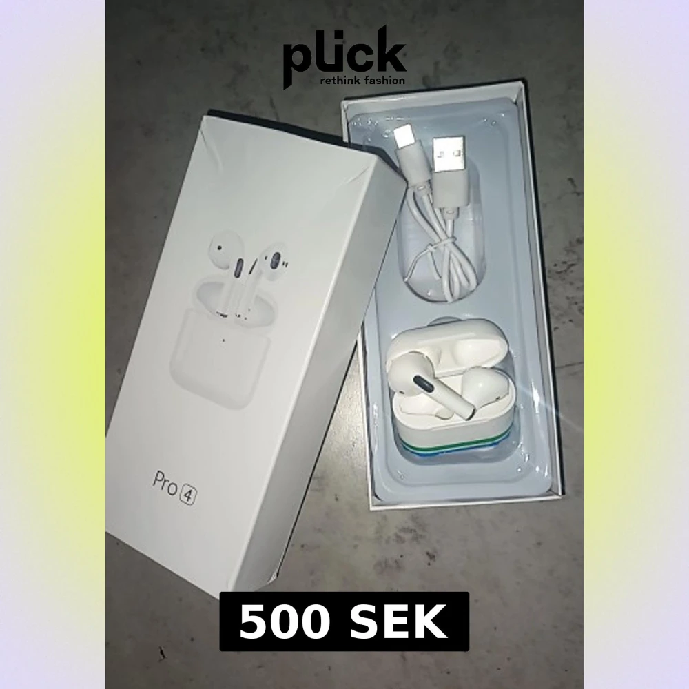 Pro 4 trådlösa hörlurar med laddningsetui och laddkabel. Helt nya i förpackning, hörlurarna är fortfarande inplastade. Kompatibla med de flesta enheter via Bluetooth. Perfekt för musik, samtal och träning.