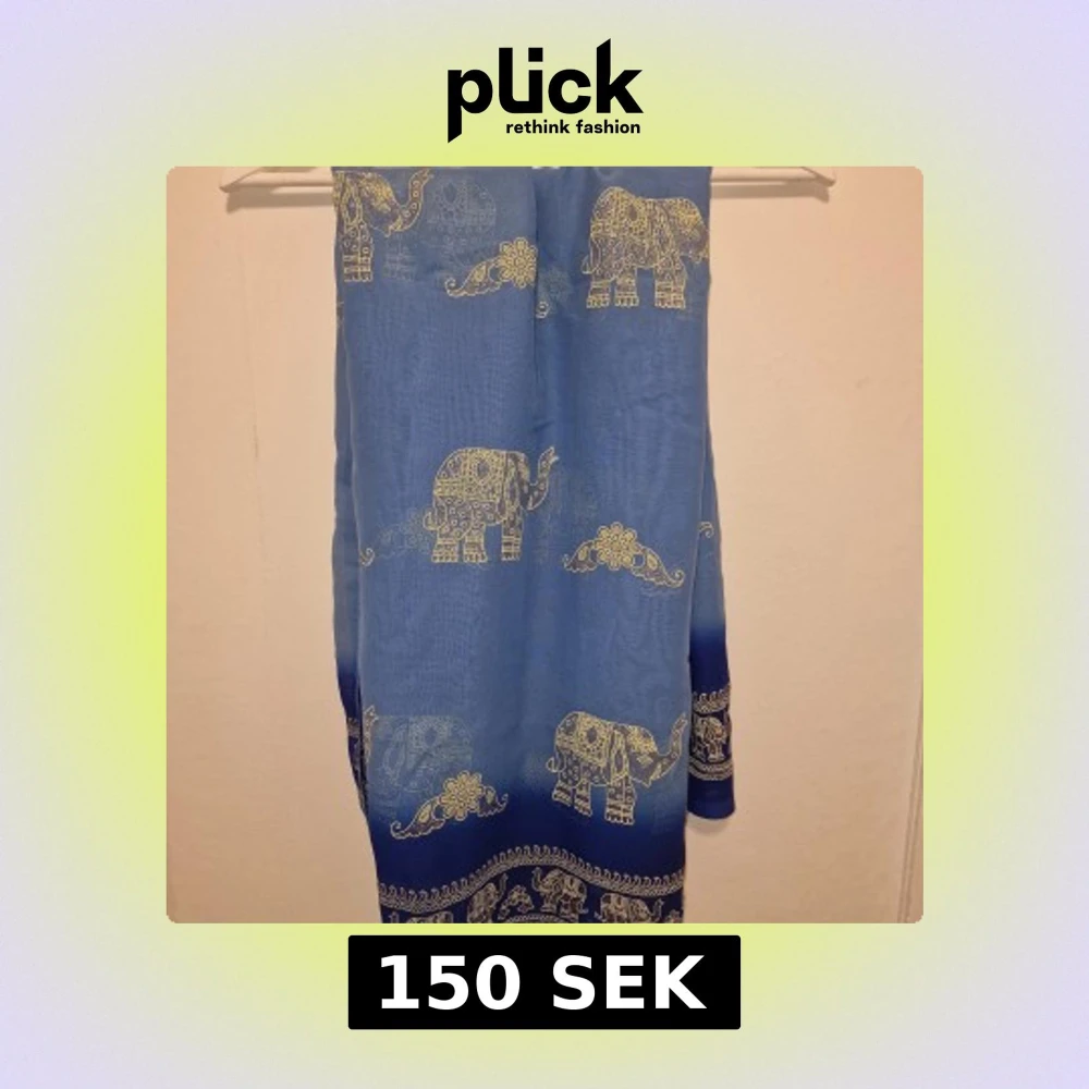 Snygg blå sarong/sjal med detaljerade elefantmotiv. Tunt och lätt material som ger ett luftigt intryck. Perfekt accessoar för att lyfta din outfit med ett unikt och färgstarkt mönster.
