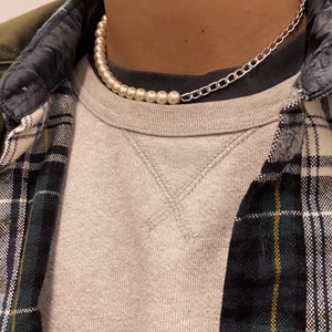 Stilfullt halsband med pärlor  - Material-rostfritt stål, bra kvalitet. Kedjetjocklek-7mm