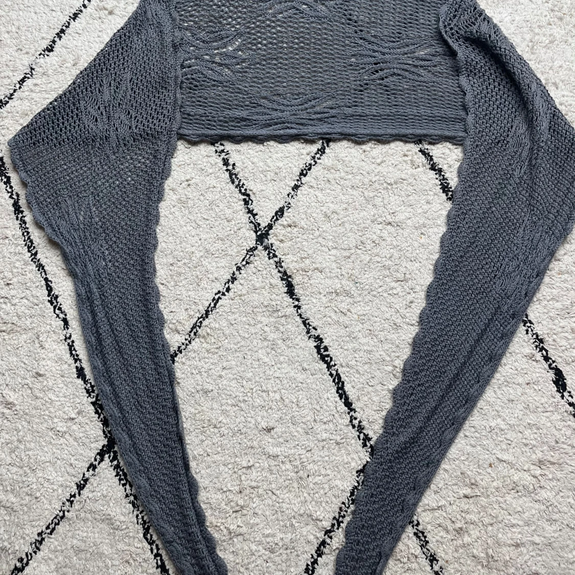 Gråblå virkad sjal från Rabalder. Perfekt att slänga över en topp för extra stil. Mjuk och skön.