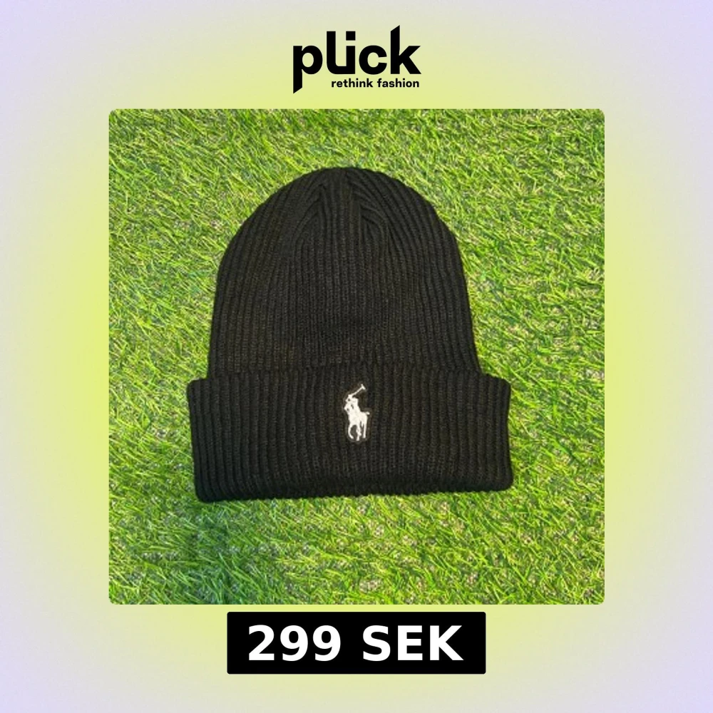 Svart ribbstickad mössa från Polo Ralph Lauren med klassisk broderad logga i vitt framtill. Mjuk och varm, perfekt för kyliga dagar. Stilren design med uppvikt kant som ger en snygg look.