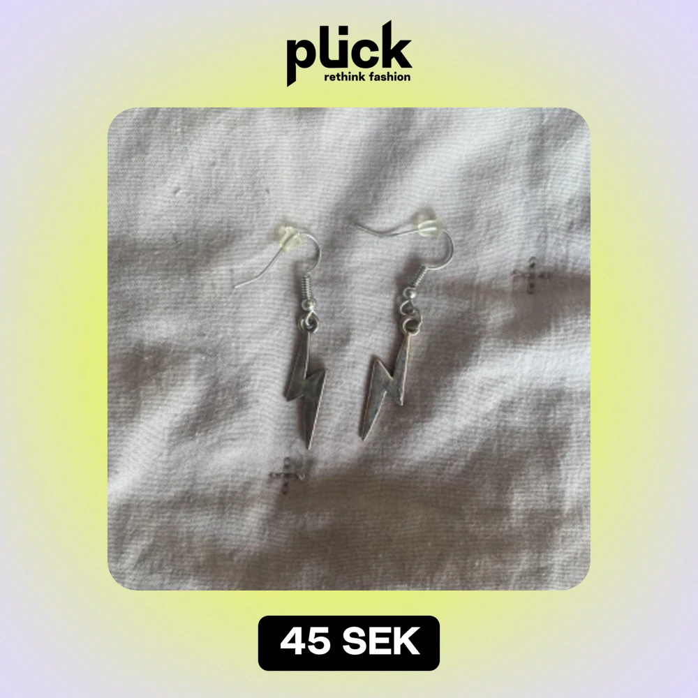 Säljer ett par coola blixtformade örhängen i silver. Perfekta för att ge din outfit en edgy touch! De är i nyskick och har en enkel krok för att hänga i öronen. Passar både till vardags och fest.