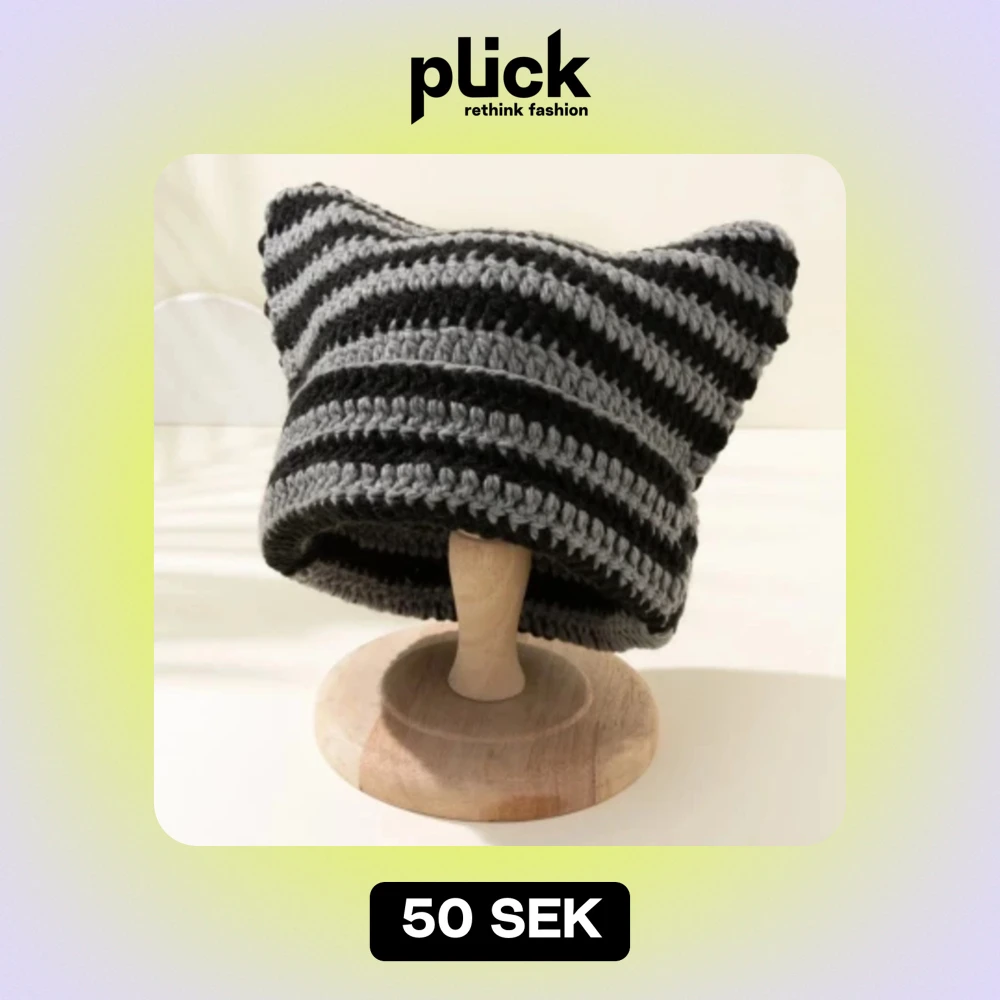 En grå och svart katt öronformad mössa från shein som jag knappt ens har använt, den är i nyskick utan skador