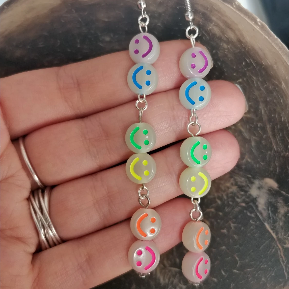 Handgjorda självlysande smiley-örhängen 🙂 fri frakt (ej spårbar). Endast swish