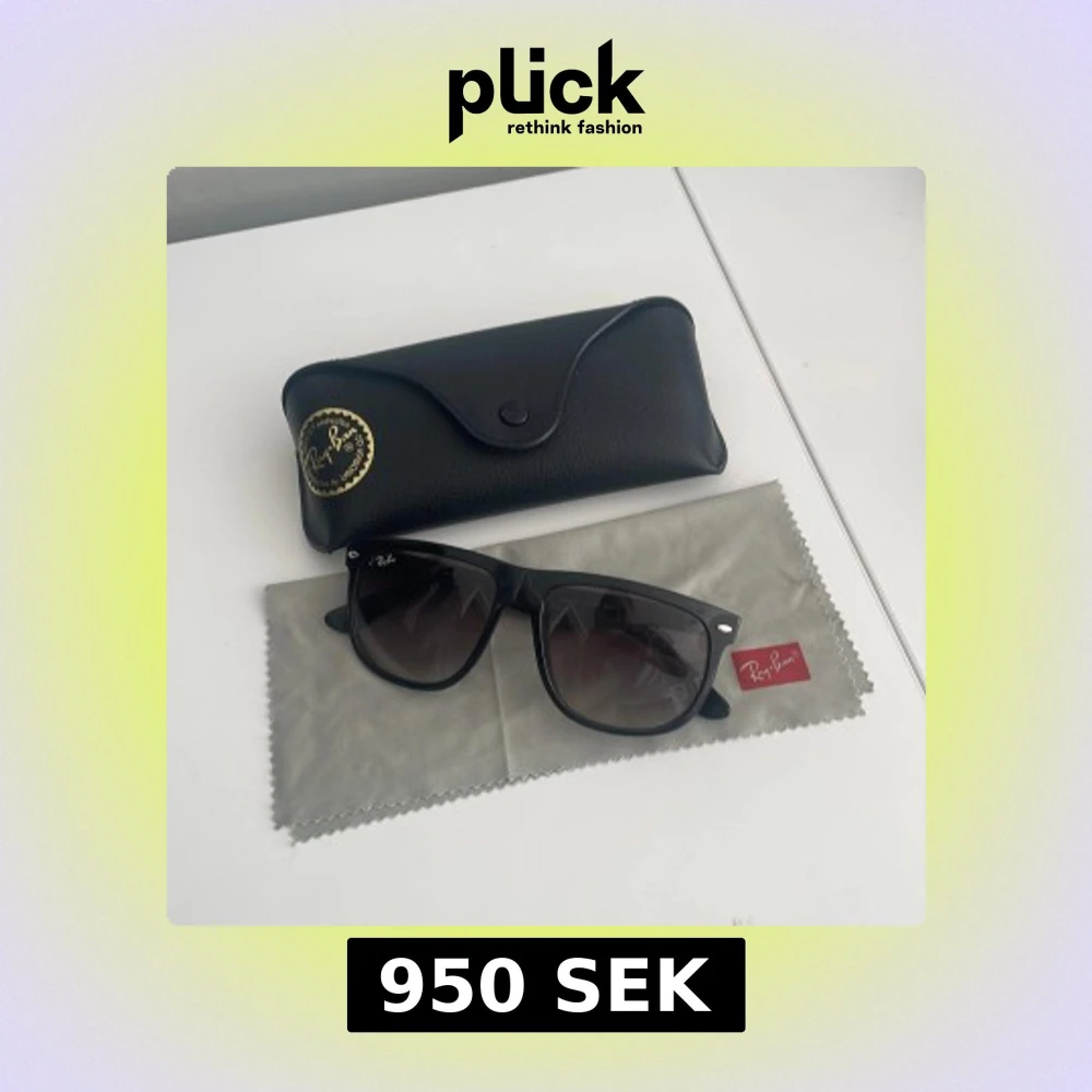 Klassiska svarta solglasögon från Ray-Ban med Wayfarer-inspirerad form. Glasögonen har mörka tonade linser och kommer med originalfodral och putsduk. Perfekt accessoar för att lyfta din stil. De är dom mindre boyfriend storleken skriv vid minsta fråga elelr fundering säljer då jag inte har någon användning av dem!