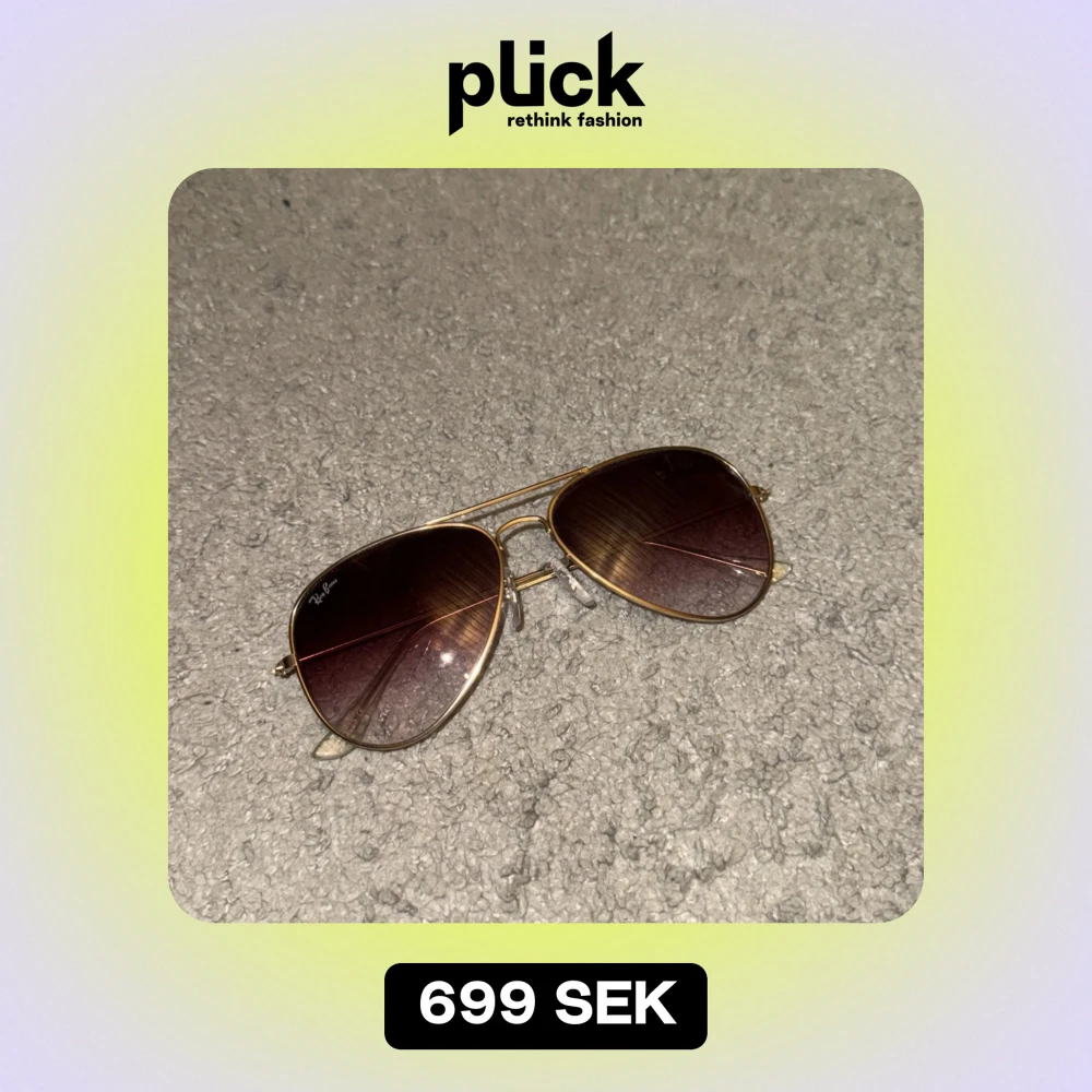 Snygga Ray-Ban aviator solglasögon med guldfärgad metallram och mörka tonade glas. Perfekta för en cool och klassisk look, oavsett om du är på stranden eller i stan. De har justerbara näskuddar för extra bekvämlighet.