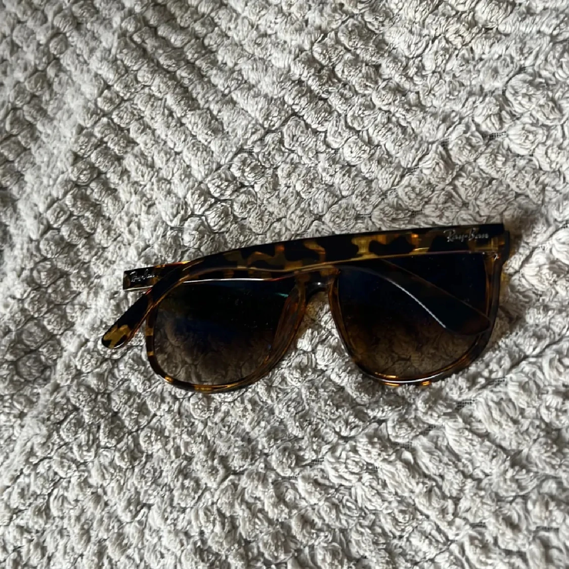 Snygga Ray-Ban Wayfarer solglasögon med brunmelerad båge i klassisk modell. Glasen är mörka och bågen har en cool sköldpaddsmönstrad look. Perfekta för att lyfta din stil under soliga dagar.