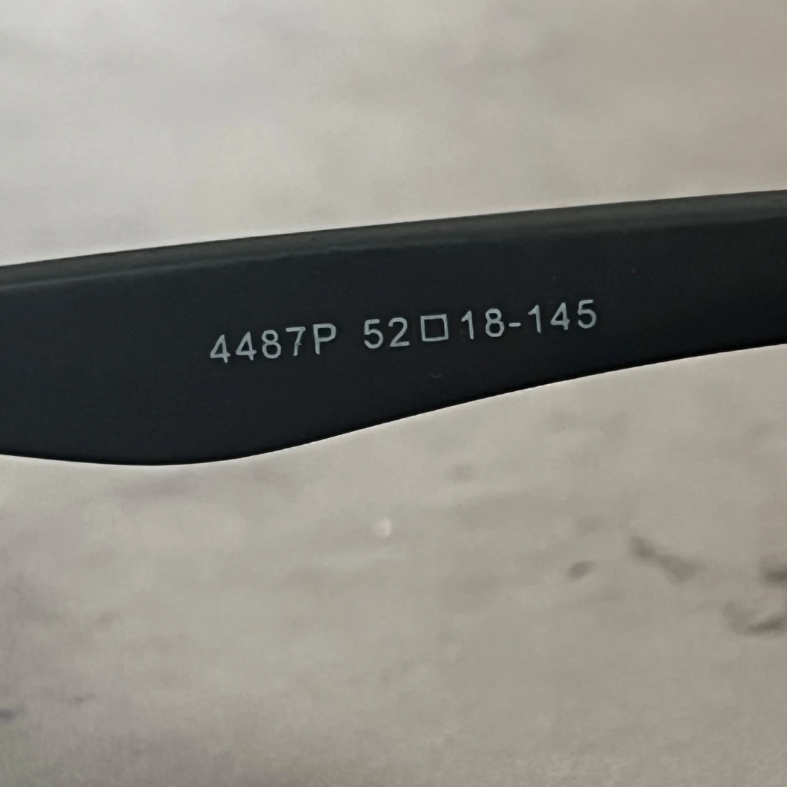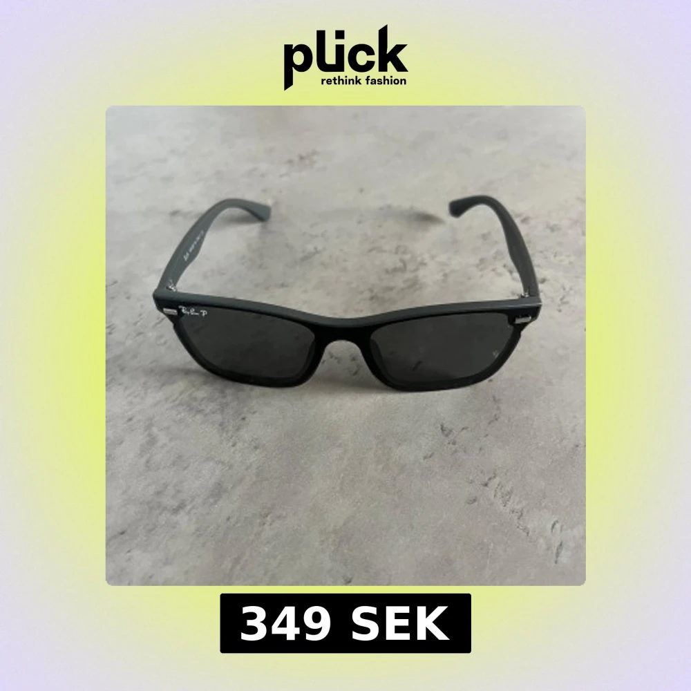 Snygga svarta Ray-Ban solglasögon modell 4487P med rektangulär form och polariserade mörka glas. Kommer med originalfodral, putsduk och manual. Perfekta för att ge en cool vibe till din stil.