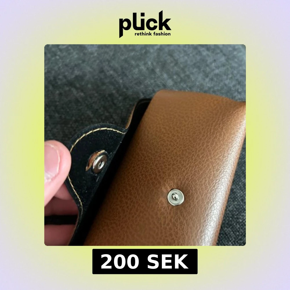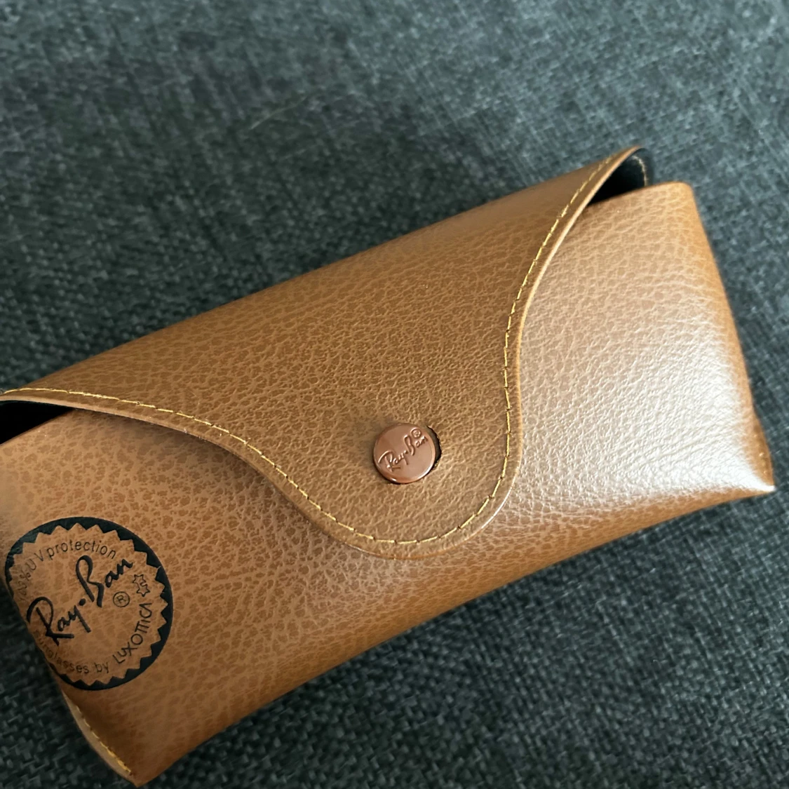 Snyggt brunt glasögonfodral från Ray-Ban i läderimitation med tryckknapp och logotyp på framsidan. Perfekt för att skydda dina solglasögon eller vanliga glasögon när du är på språng. Enda problemet är när man öppnar och stänger har den lossnat, men fungerar ändå. Passar till ray ban boyfriends storlek 56.