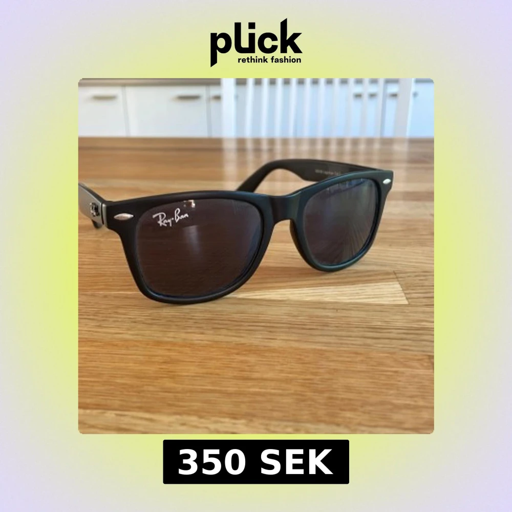 Klassiska svarta solglasögon från Ray-Ban med Wayfarer-form. Bågarna är mattsvarta och har silvriga detaljer vid fronten.