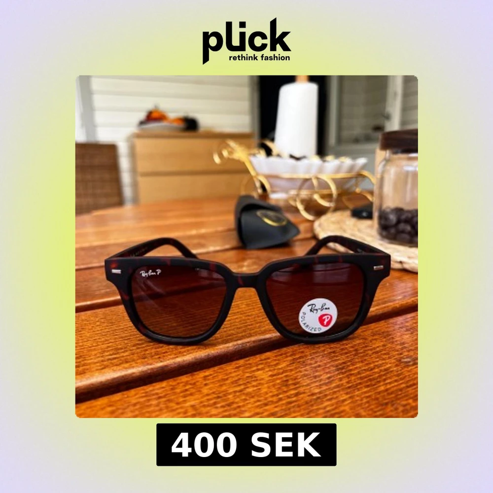 Snygga solglasögon från Ray-Ban med mörkbrunt sköldpaddsmönster och polariserade linser. Rektangulär form och klassisk design, perfekt för dig som vill ha en stilren accessoar.