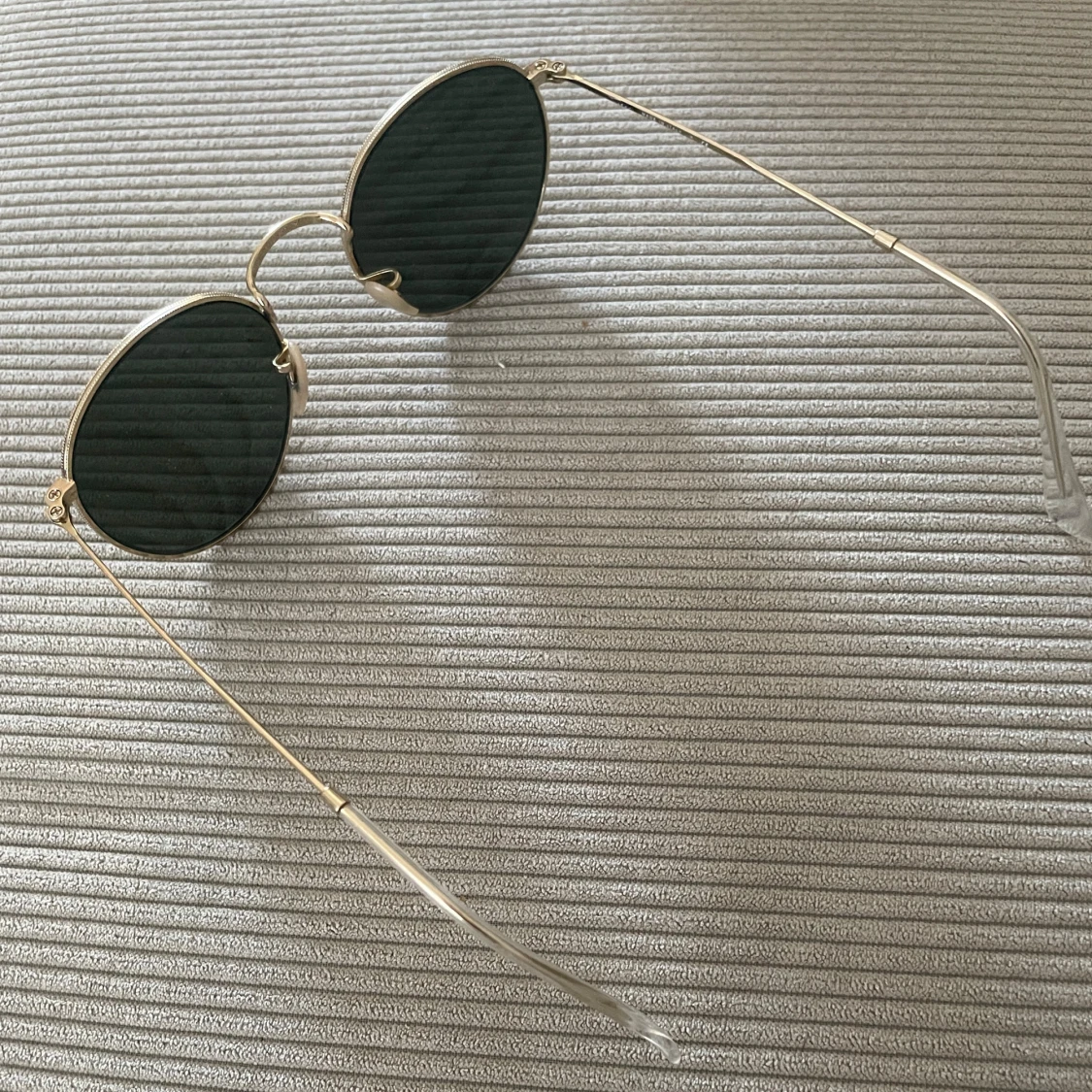 Snygga Ray-Ban solglasögon med rund form och tunna guldfärgade metallbågar. Glasögonen är i nyskick och säljes endast för att dom aldrig kommit till användning. Dessa inhandlades hos Synoptik, har tyvärr inget kvitto.