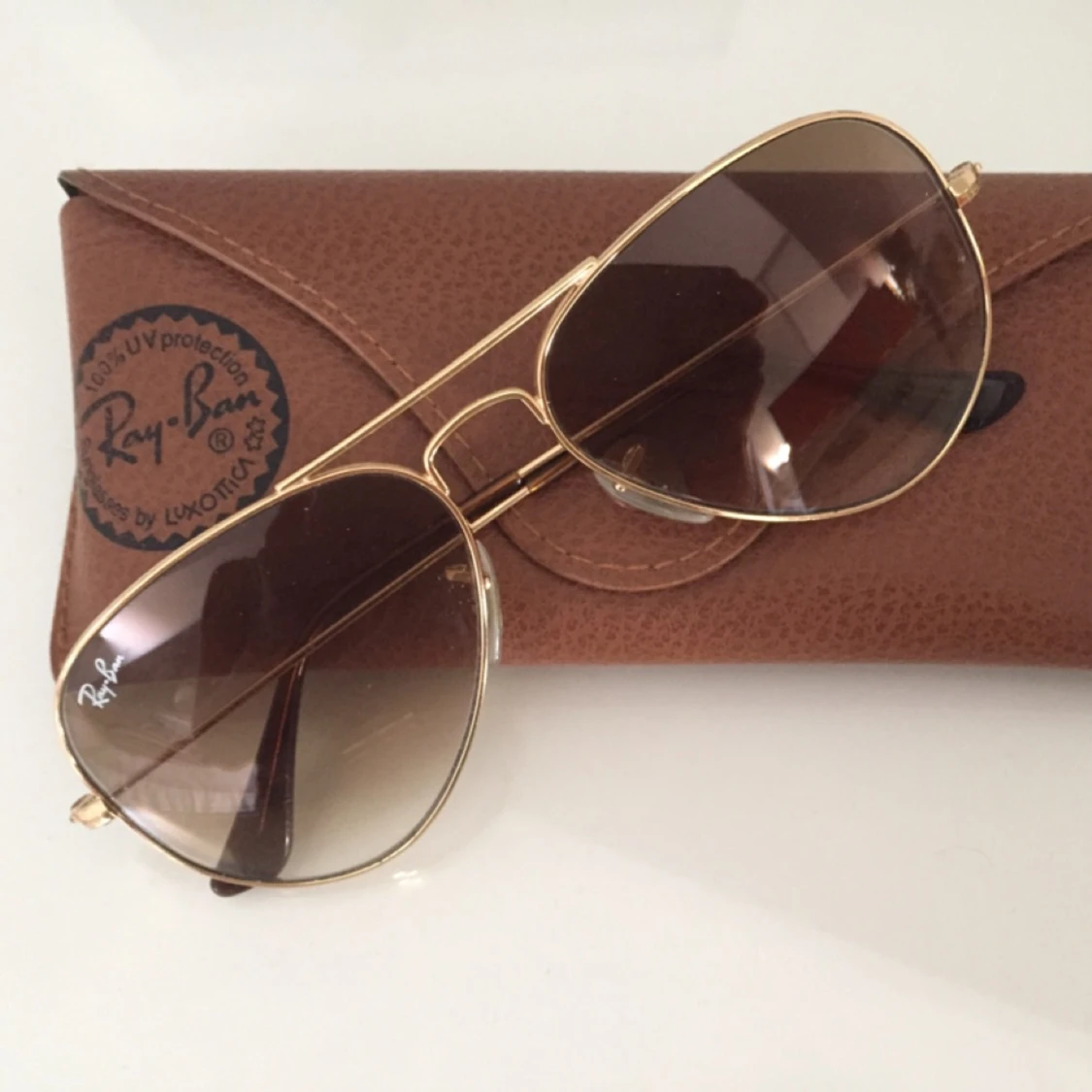 (Pilot) Ray Ban i nyskick. Ljusa och fräscha med guldiga detaljer. Går att justera storlek