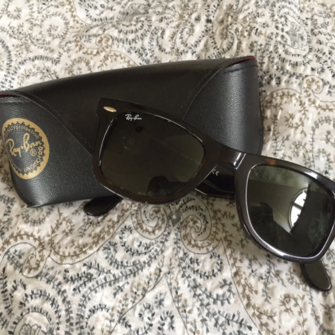 Ray Ban, äkta som inte användas många gånger. Färgen är mörk brun. Går att justera storlek. Nypris ca 2000kr