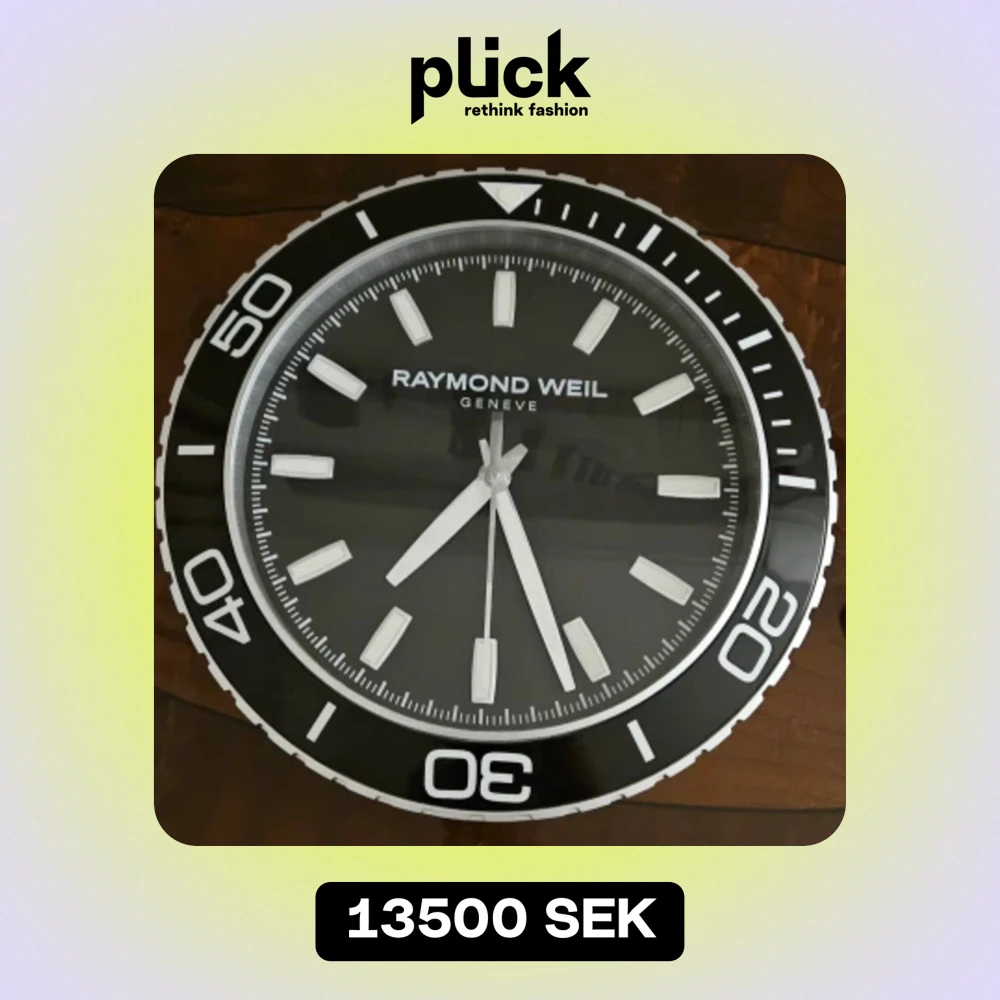 Väggklocka av märket Raymond weil Geneve i bra skick. Fungerar som den ska. Lyser i mörkret och är ganska snygg design 👍 Är ganska sällsynt klocka