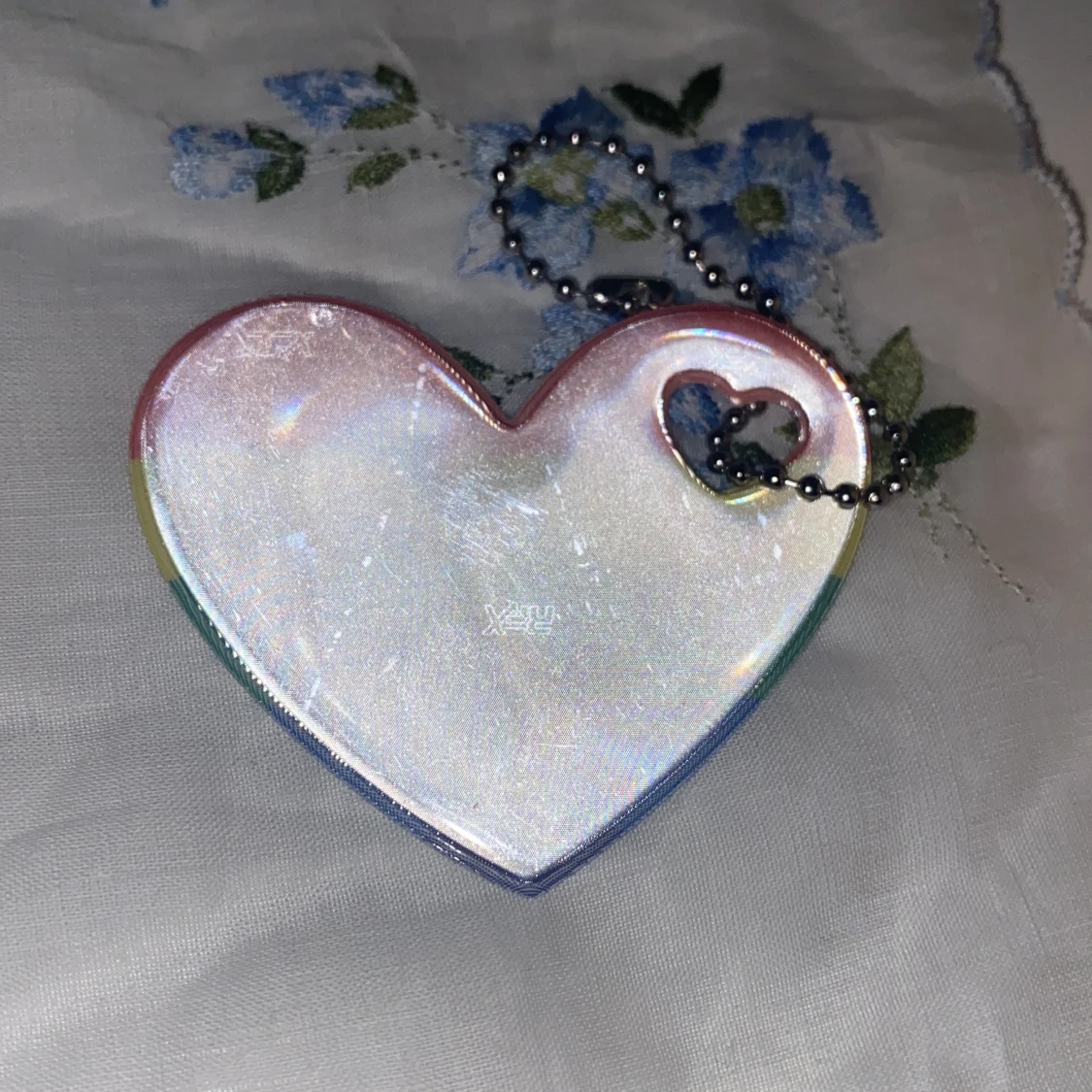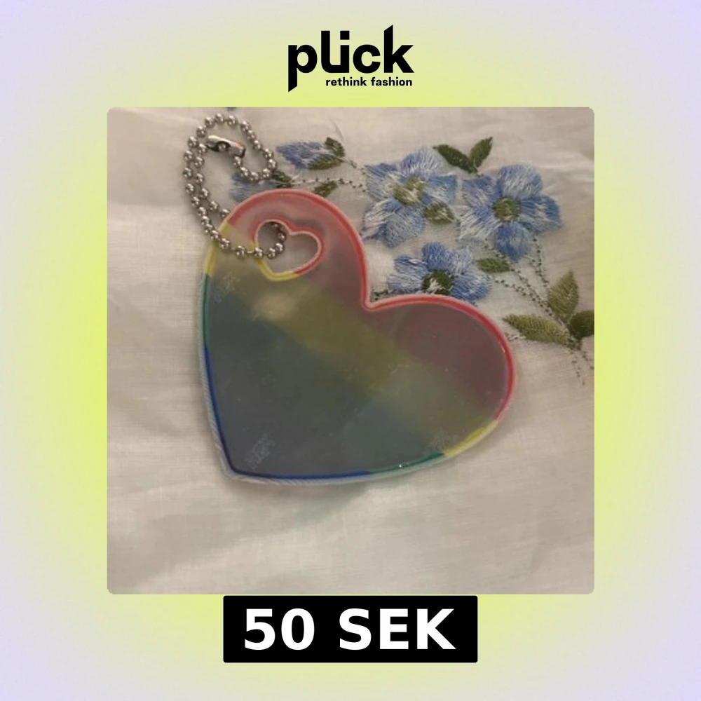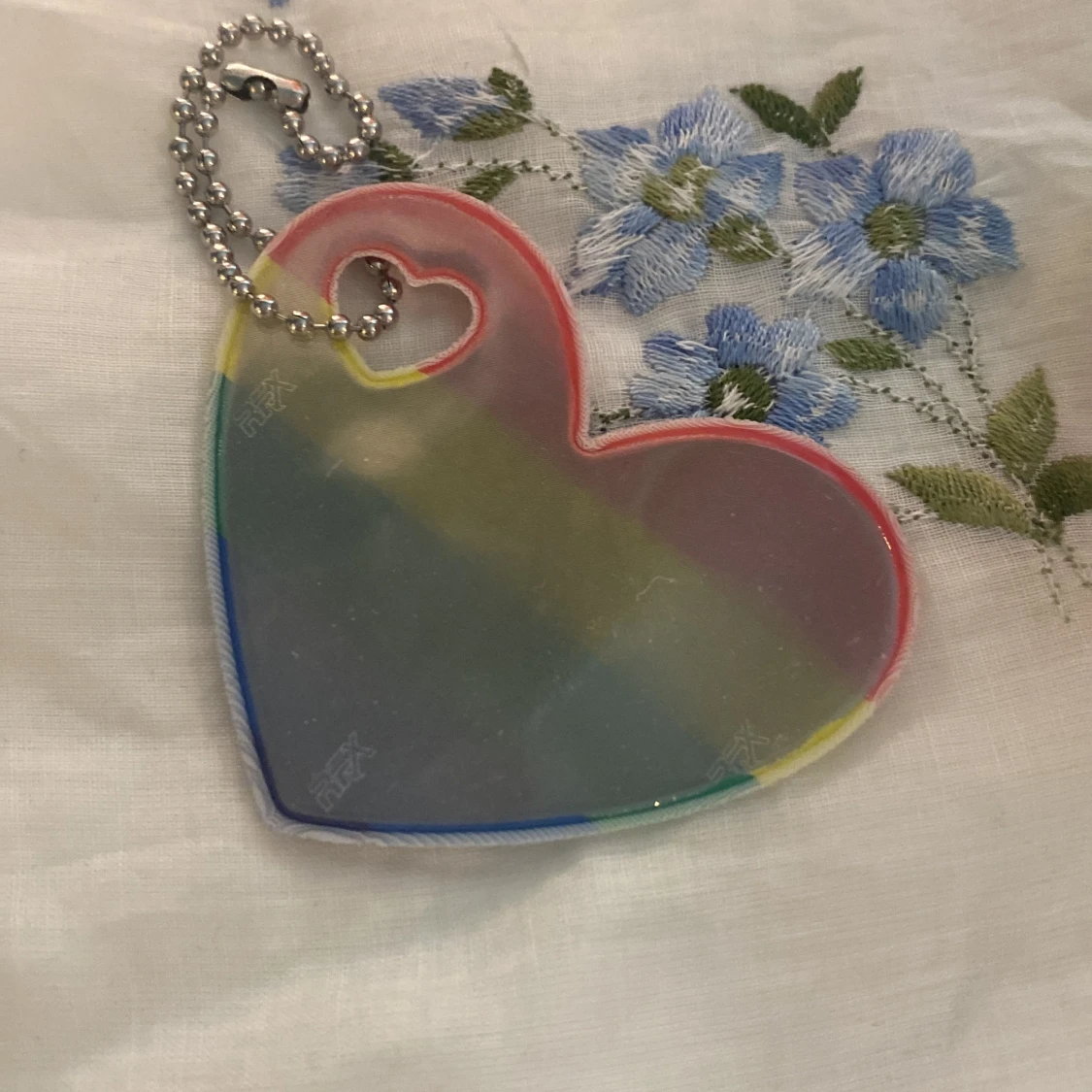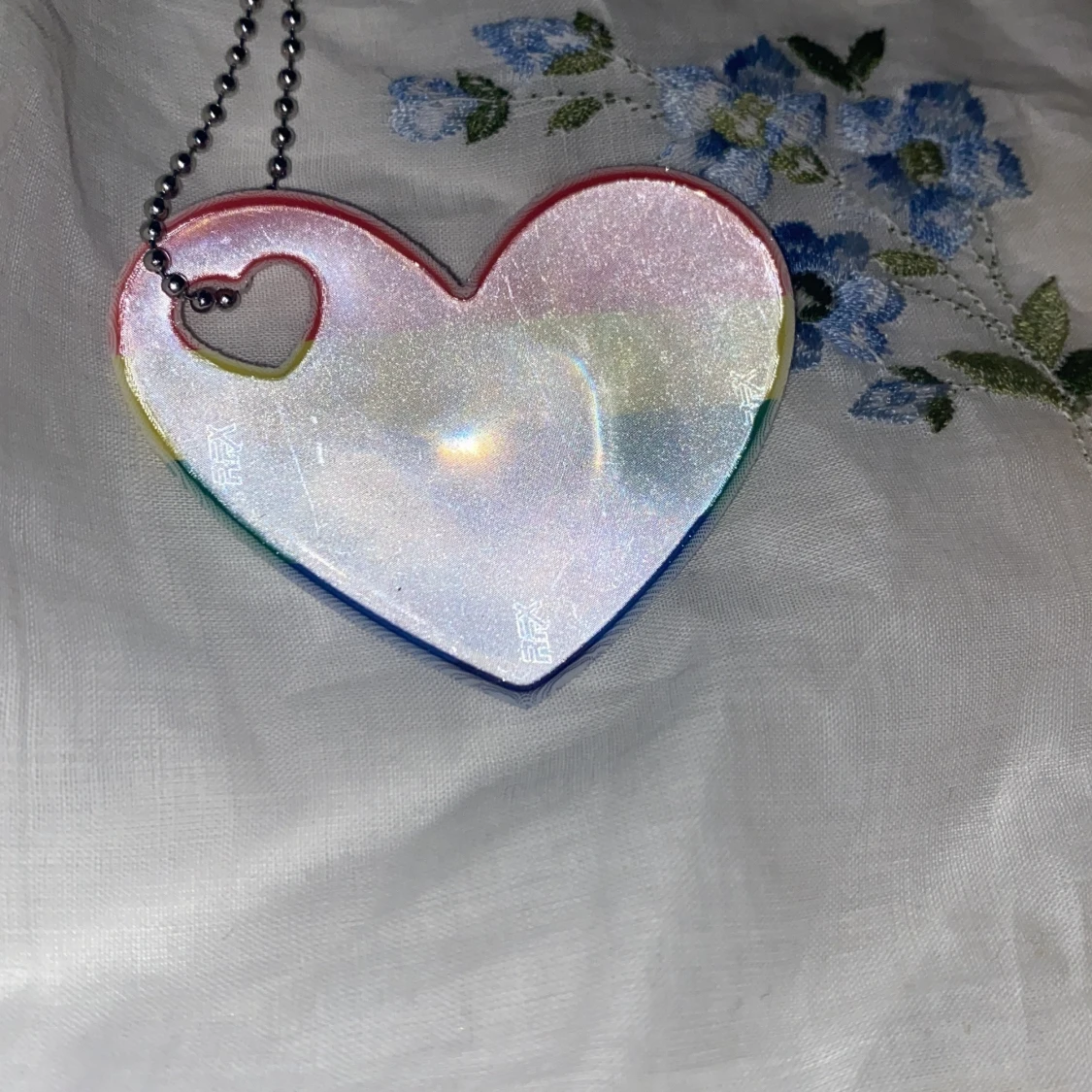 Säljer en söt reflex i form av ett hjärta med regnbågsfärgad kant och en liten hjärtformad öppning för kedjan. Perfekt att hänga på väskan eller jackan för extra synlighet.