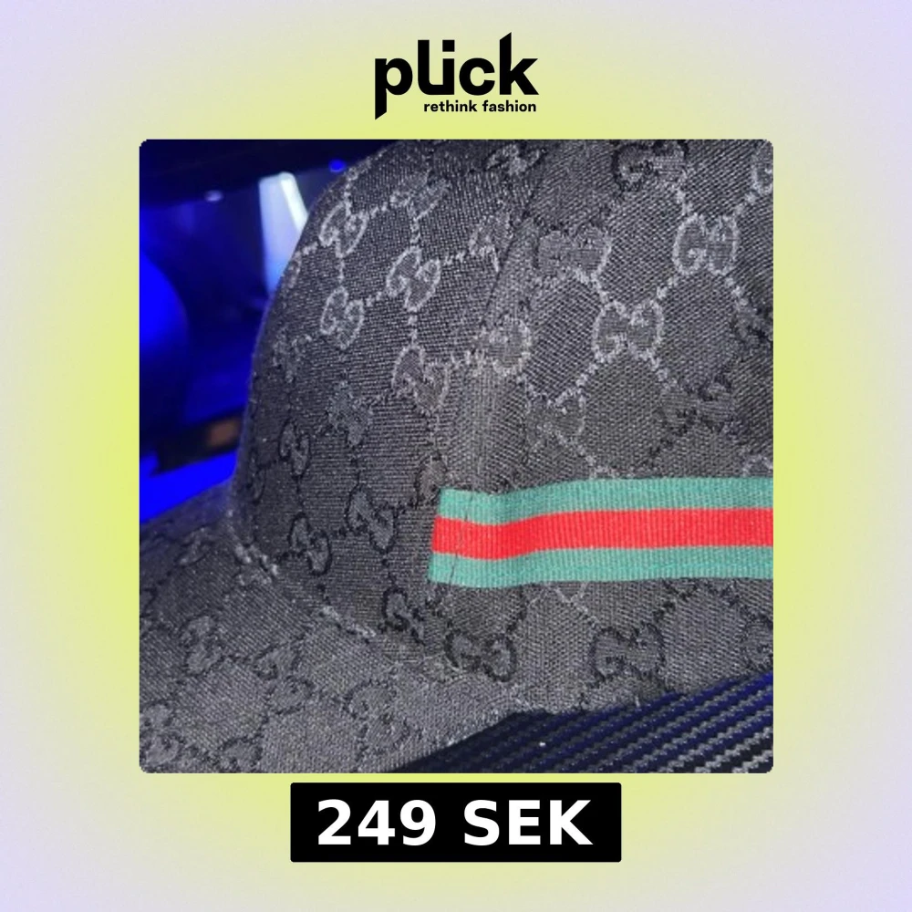 Snygg svart keps med ett diskret mönster och en grön och röd randdetalj. Perfekt för att ge en stilren touch till din outfit.