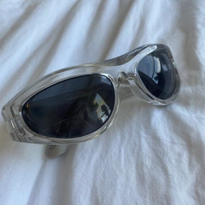 Solglasögon med mörkt glas och genomskinlig ram. Från H&M Nypris var 250kr har jag för mig.