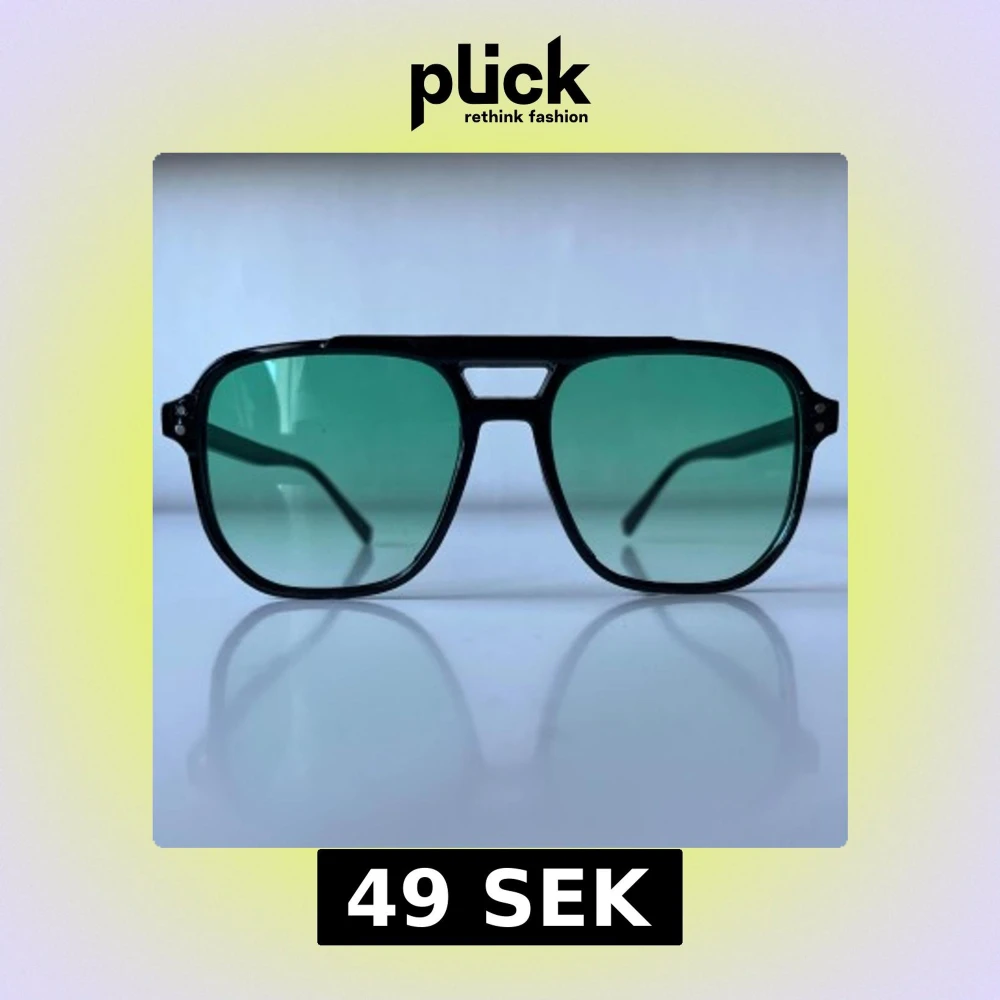 Retro solglasögon – svart båge med gröntonade glas Coola vintageinspirerade solglasögon med svart båge och gröna tonade linser. Sitter bekvämt och ger en stilren look. Perfekt för sommarens alla outfits! Helt nya, se bilder för detaljer.