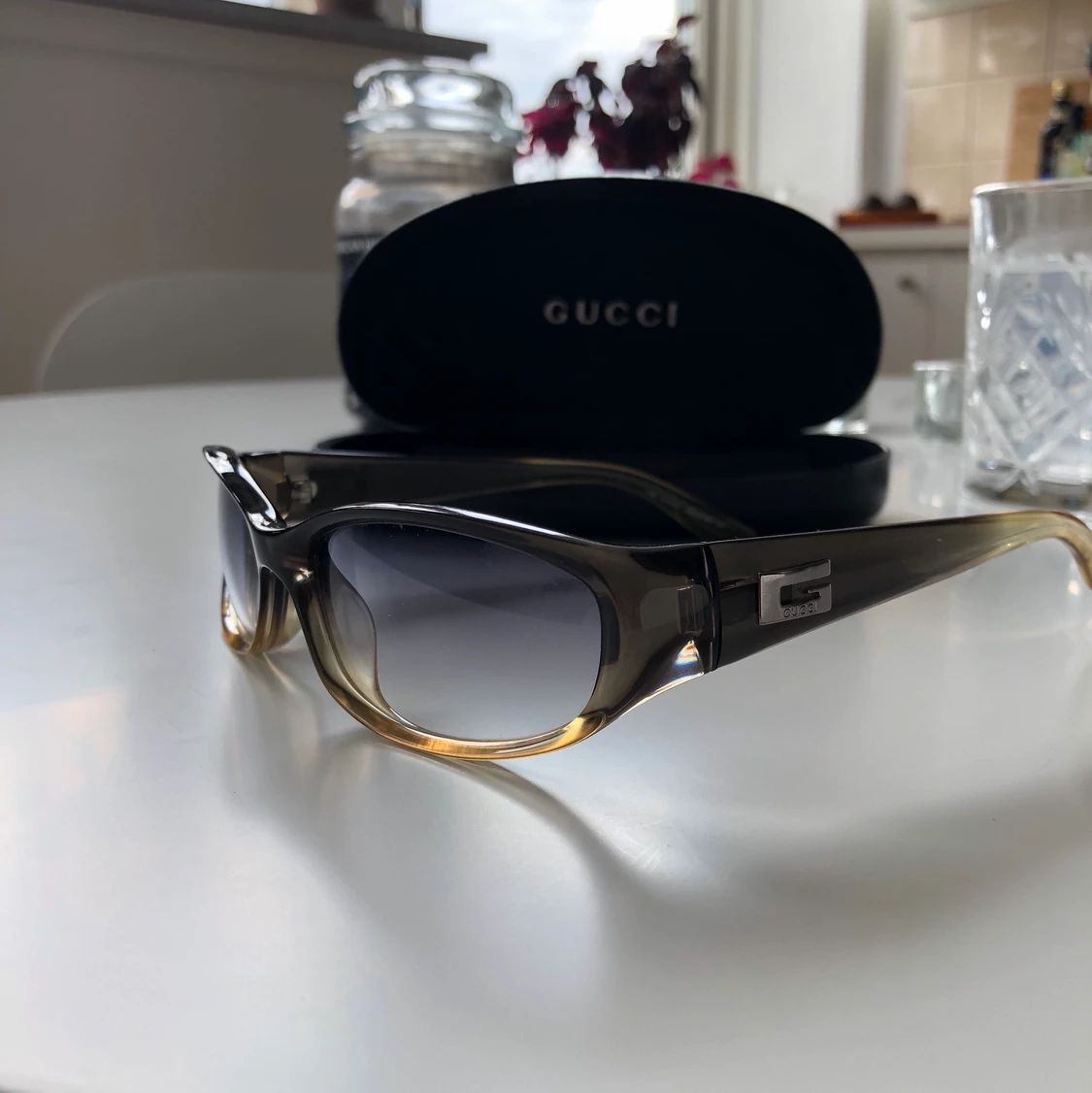 GUCCI solglasögon made in Italy. Inga repor eller skador. Tolkar färgen som olika nyanser av brun och formen är rektangulär. Fodral medföljer.