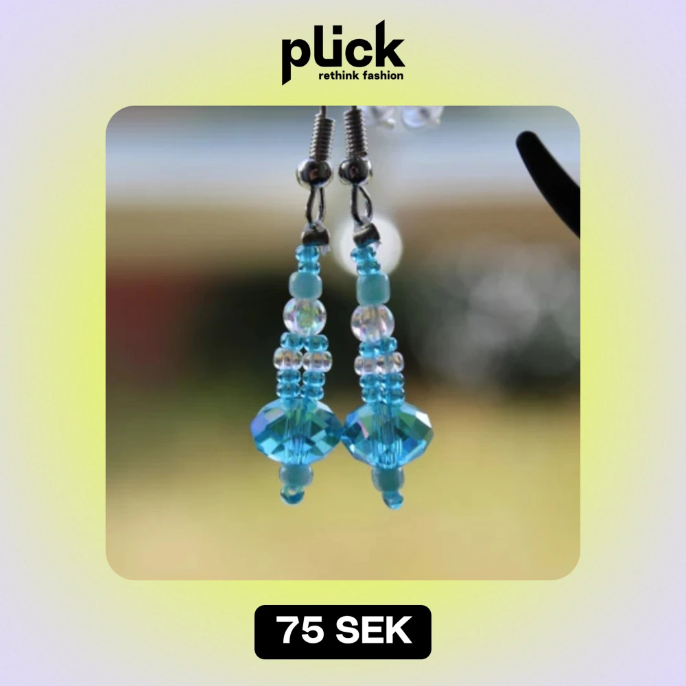 Säljer ett par superfina blå pärlörhängen. De har en härlig mix av olika blå nyanser och genomskinliga pärlor som ger en glittrig effekt. Perfekta för att piffa upp vilken outfit som helst! 💙