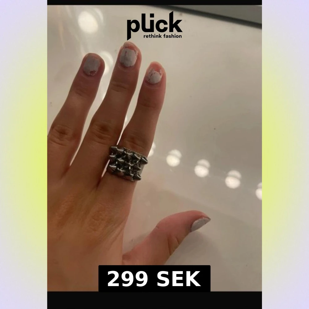 säljer denna fina ring i storlek s. obs den har tappat en nit men de syns inte så mycket. ringen är 16,8 mm