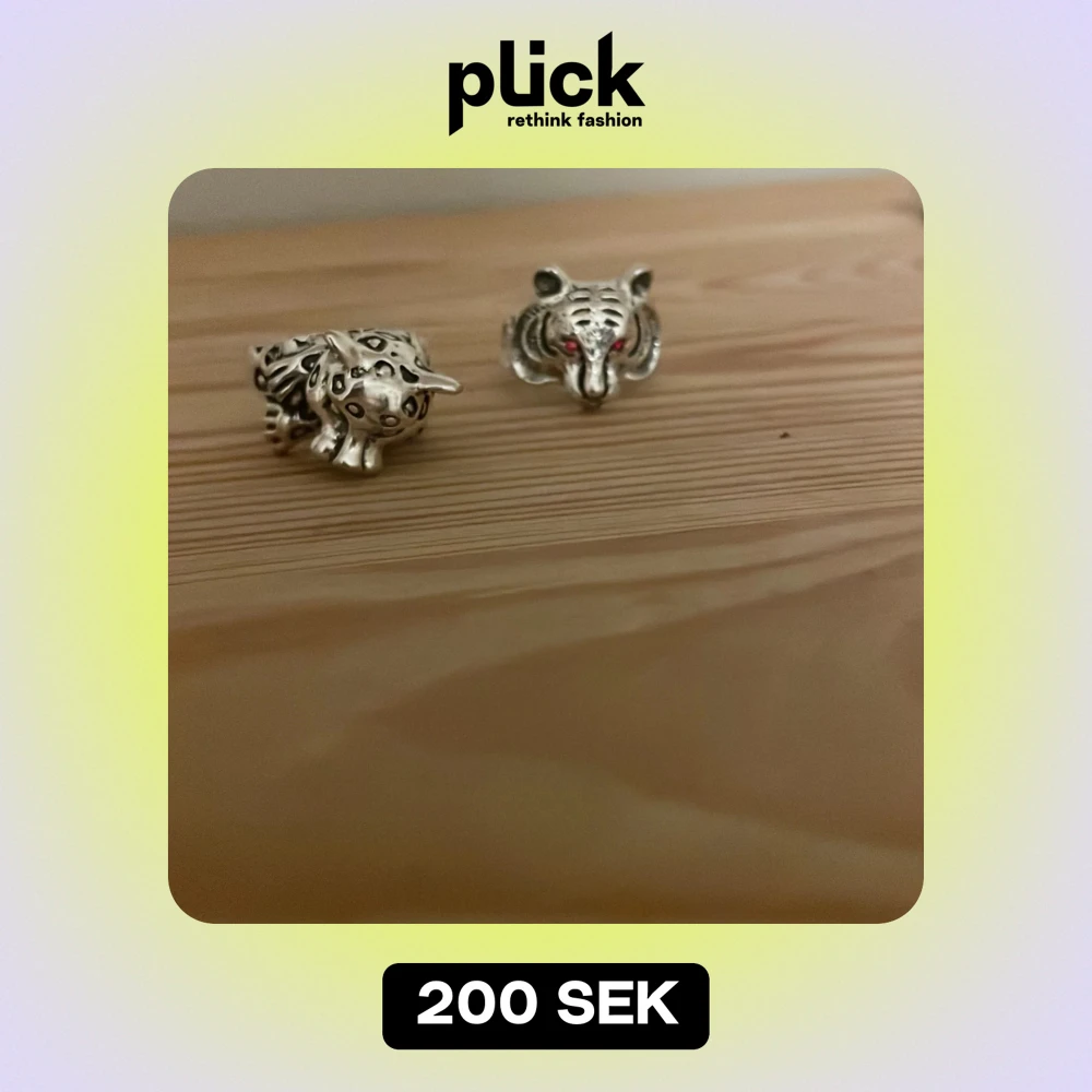 TvĂ„ coola ringar i silver med djurmotiv. Den ena ringen har en tigerdesign med röda ögon, medan den andra förestĂ€ller en leopard. Perfekta för att ge din outfit en unik touch. Passar bra till bĂ„de vardag och fest! 200 styck ( pris kan diskuteras ) bĂ„da för 300!Hör av er vid frĂ„gor!â€ïž
