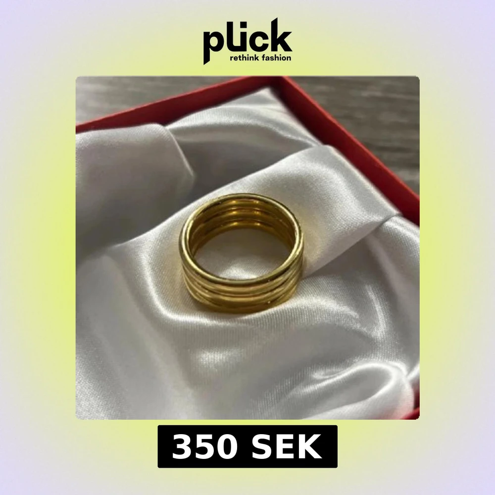 Snygg bred ring i guldton med flera räfflade linjer runt hela ringen.