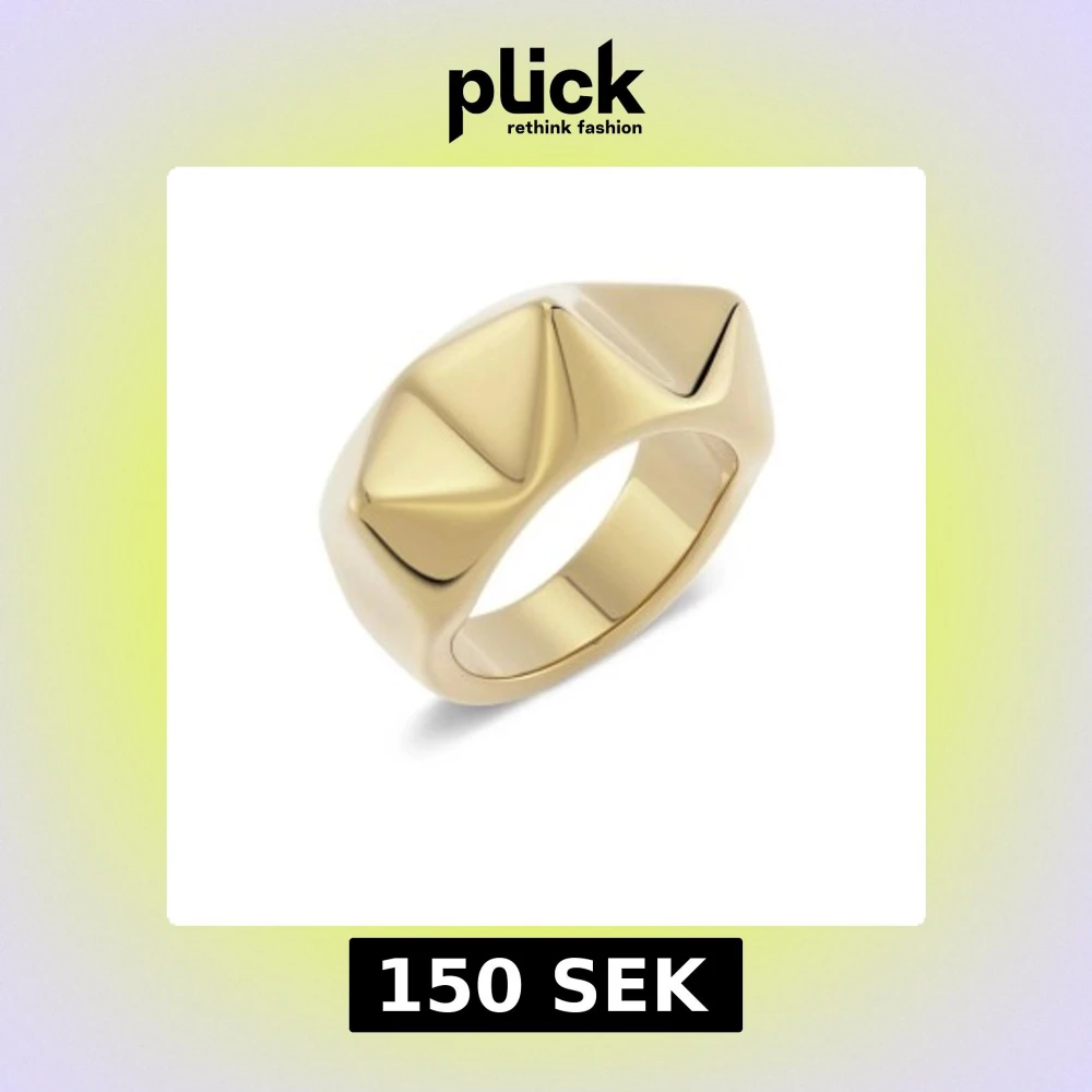 Cool och chunky ring i guldton med en unik pyramidformad design på ovansidan. Ringen har en bred och blank yta som verkligen sticker ut och ger en edgy vibe till din stil.