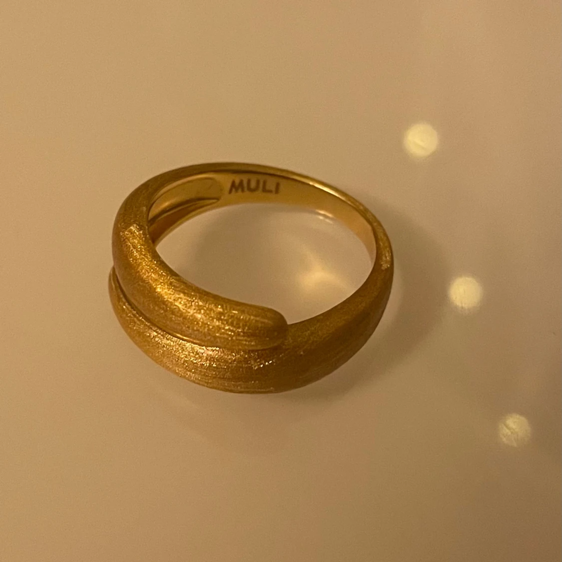 Guldig jättefin justerbar ring från Muli Collection. Aldrig använd.