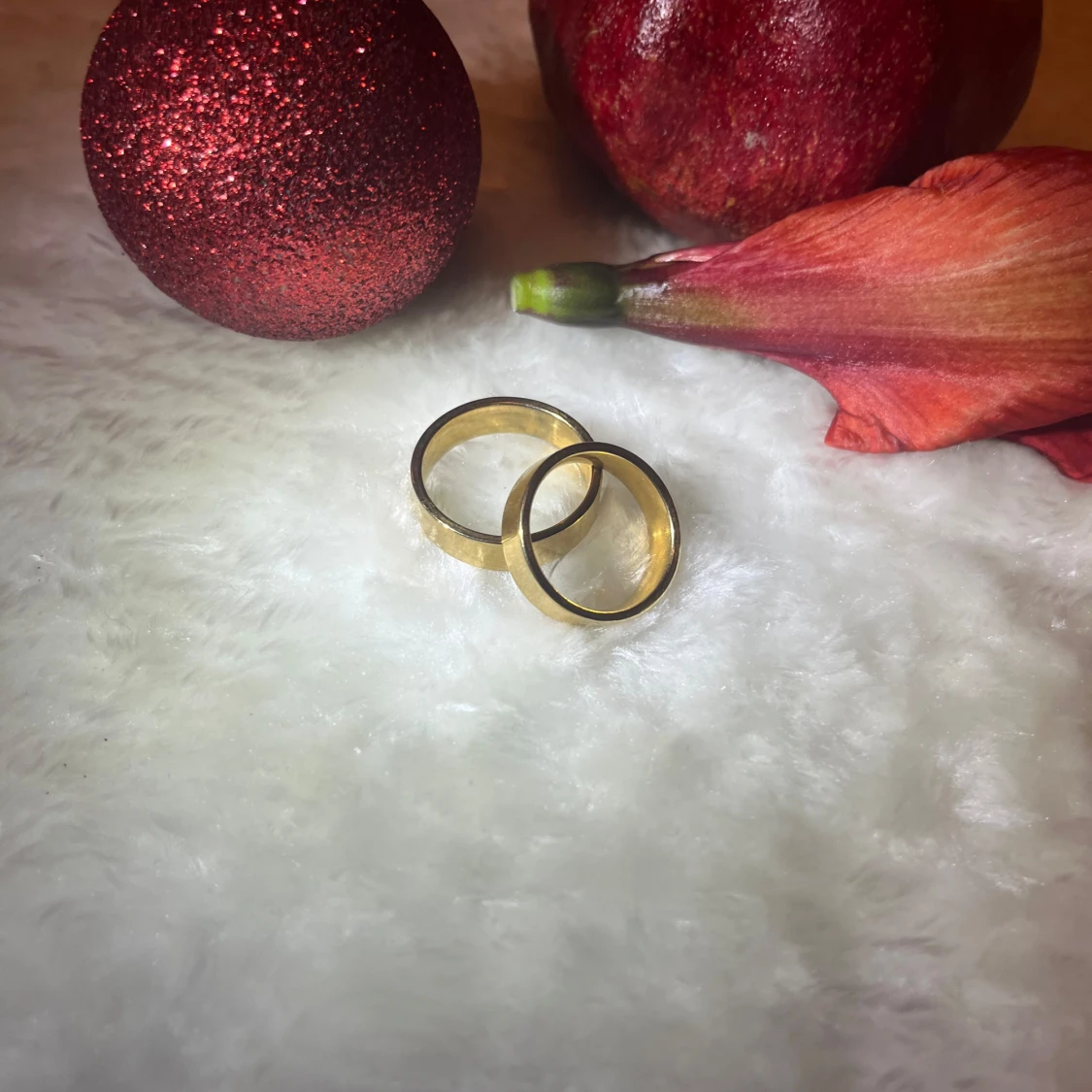 Nyskick, guldplaterade ringar i rostfritt stål