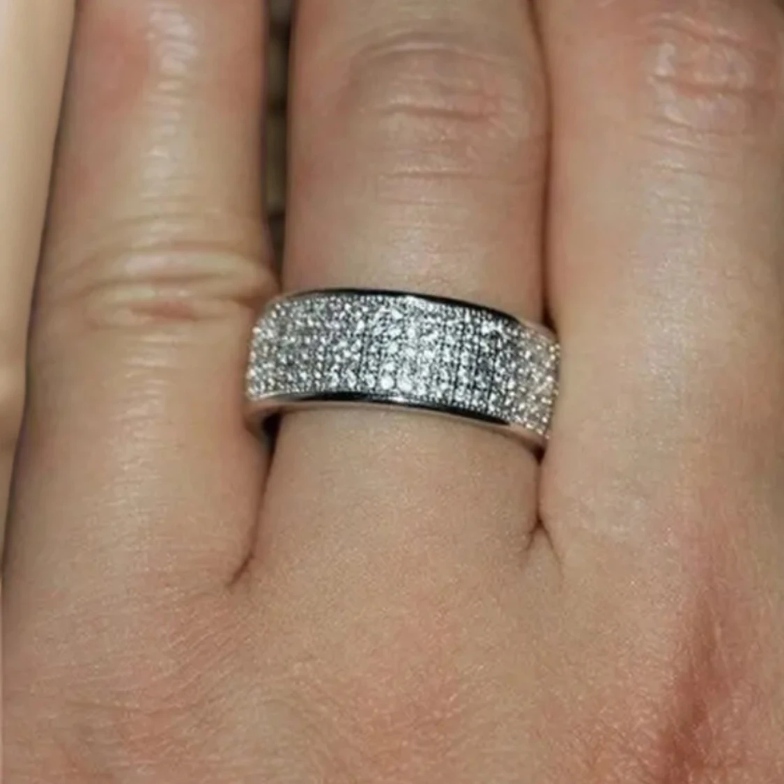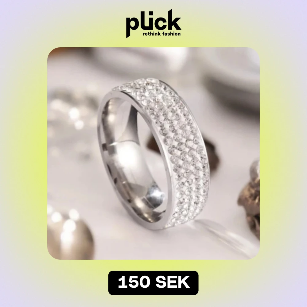 Ring i stainless steel med med strass runtom. Storl 7 Bredd 11 mm Katt finns i hemmet