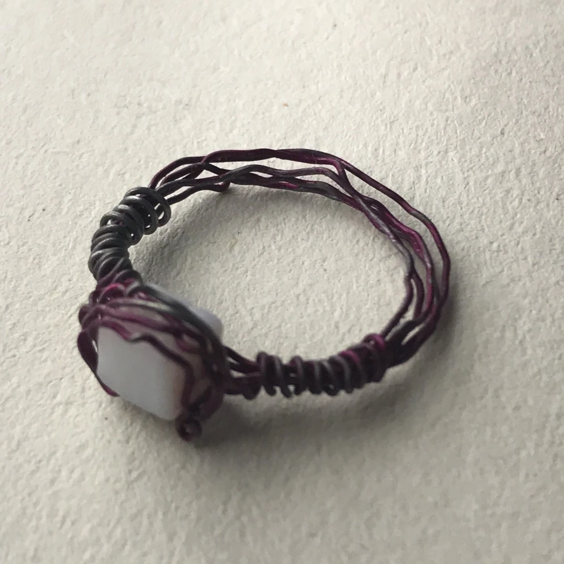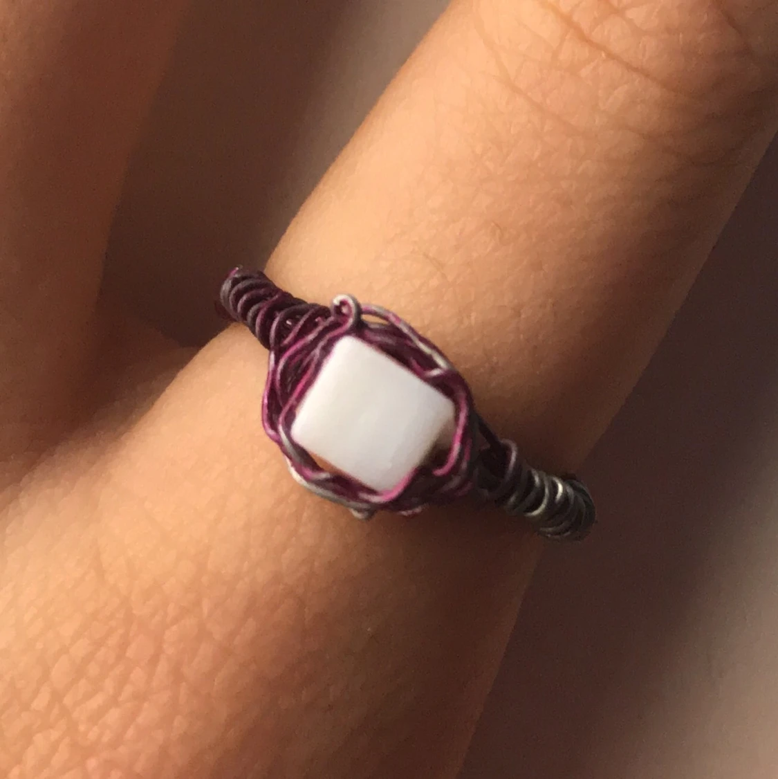 SĂ€ljer en fin lila/silvrig ring med en vit stenđ size XS/S/M och köparen stĂ„r för frakten